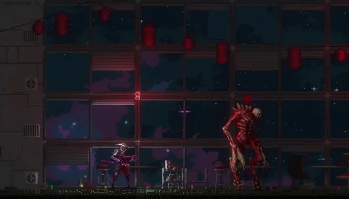 Si un projet devait incarner cette résurrection, ce serait sans doute Katanaut. Développé par Voidmaw en solitaire depuis trois ans, ce Rogue-like spatial au pixel art brutal nous propulse dans une station infestée d’horreurs cosmiques. Katana en main, fusil à la ceinture, le joueur taille, tire et survit, recommençant inlassablement chaque tentative pour arracher un morceau de vérité aux ténèbres.