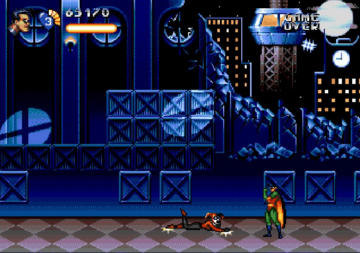 The Adventures of Batman and Robin, sorti en France sous le titre simplifié de Batman & Robin est l’un des plus beaux jeux de l’époque 16 bits. Sorti sur Mega Drive en 1994, il sort ensuite sur SNES, un an plus tard. Mais bien que possédant le même titre, les deux jeux sont complètement différents. Le titre SNES a bénéficié du savoir-faire de Konami tandis que le jeu Mega Drive fut développé par l’obscur Clorwork Tortoise (la Tortue Mécanique, donc. Un nom qui conviendrait parfaitement à un méchant dans Batman !).