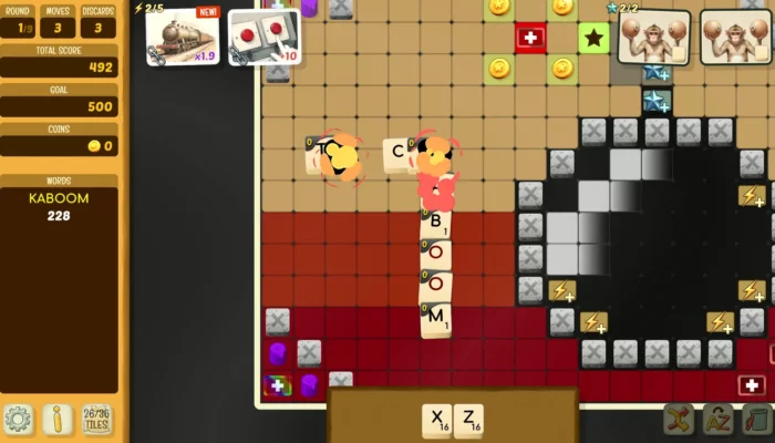 Dans Beyond Words, le joueur forme des mots (uniquement en anglais, il faudra donc avoir un bon niveau) et déclenche des combos qui influencent le déroulement de la partie. Ajoutez à cela plus de 300 modificateurs, aptitudes et coups spéciaux, et on voit le potentiel pour rendre chaque session unique : tuiles piégées, multiplicateurs, bonus… De quoi renouveler constamment sa stratégie et appréhender chaque partie différemment.