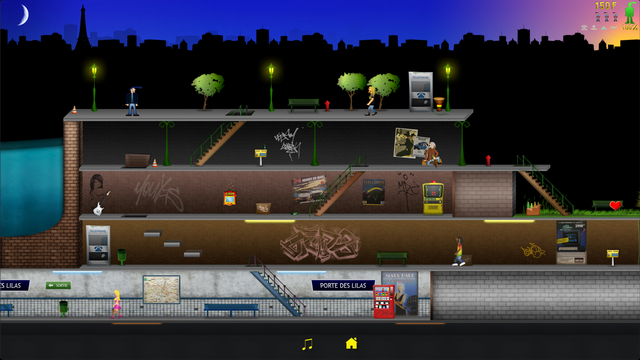 Mais Billy la Banlieue se distinguait aussi par son ambiance et son esthétique singulière. Le joueur incarnait Billy, un personnage arpentant le métro parisien des années 80, confronté à différents obstacles et rencontres, entre phases de plateformes et mini-jeux. L’inspiration du développeur, Jean-Philippe Biscay, la puisait directement dans sa propre expérience. Vivant à Bagnolet dans le 93, il proposait un jeu inspiré de sa banlieue et des aléas du métro, un parti pris qui a largement contribué à l’identité et à la force du titre. Il donnera d’ailleurs naissance à une suite dès l’année suivante intitulée Billy 2. Réalisé avec l’aide de son fils, il reviendra quelques années plus tard avec un remake du premier jeu sur mobile : Billy la Banlieue : Run Again.