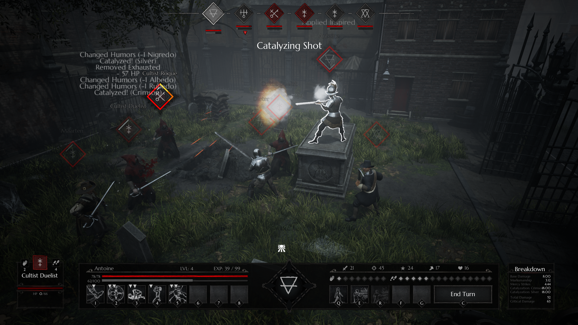Il s’agit d’un RPG au tour par tour piochant habilement dans la mythologie flamande de l’alchimie du XVIIe siècle. Nous sommes à la tête d’un groupe de mercenaires, des repris de justice en quête d’une grâce royale. Pour l’obtenir, il faudra se défaire de Méphisto, un puissant alchimiste qui a plongé la bourgade de Grant dans un épais brouillard rendant fous ses habitants.