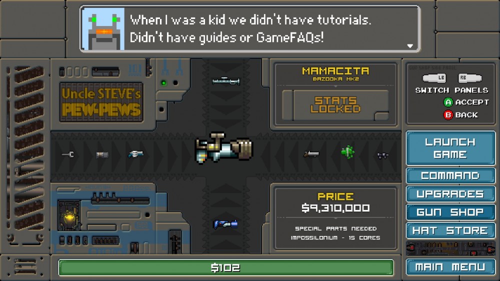 Au travers de six modes de jeux différents (dont un mode hardcore et un mode boss infini) vous affronterez des boss variés puisque générés de façon procédurale. L’alternative à la génération aléatoire des boss est l’outil Make a Boss Creator. Cet outil vous permet de créer vos propres boss morceau par morceau, et plus le boss sera puissant, plus la récompense sera élevée. Les gains issus de ces affrontements vous permettant d’acheter des augmentations de personnages, toujours plus d’armes et de nombreux couvre-chefs. Vous achèterez ces améliorations dans le centre de commande, la base personnelle de Max et S.T.E.V.E.