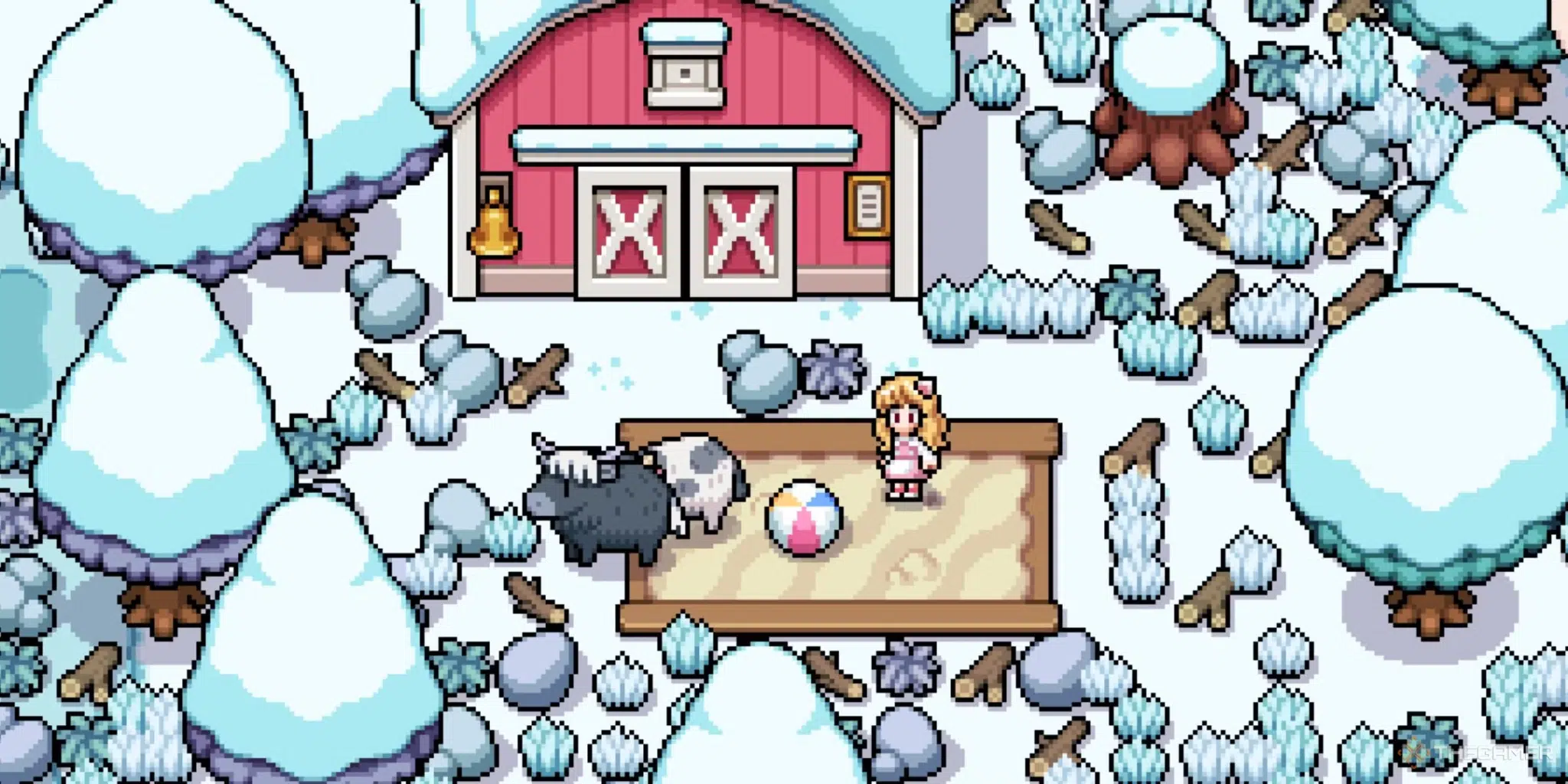 Terminons avec un jeu dans la lignée des nombreux descendants de Stardew Valley. Si vous êtes fan du titre de ConcernedApe, vous ne serez pas déstabilisé par Fields of Mistria. Vous récupérez une ferme à l’abandon et avez le champ libre pour l’aménager comme vous le souhaitez au fil des saisons. Entre les plantations, l’élevage d’animaux, la décoration de votre maison et la construction d’objets, il y a déjà de quoi faire.