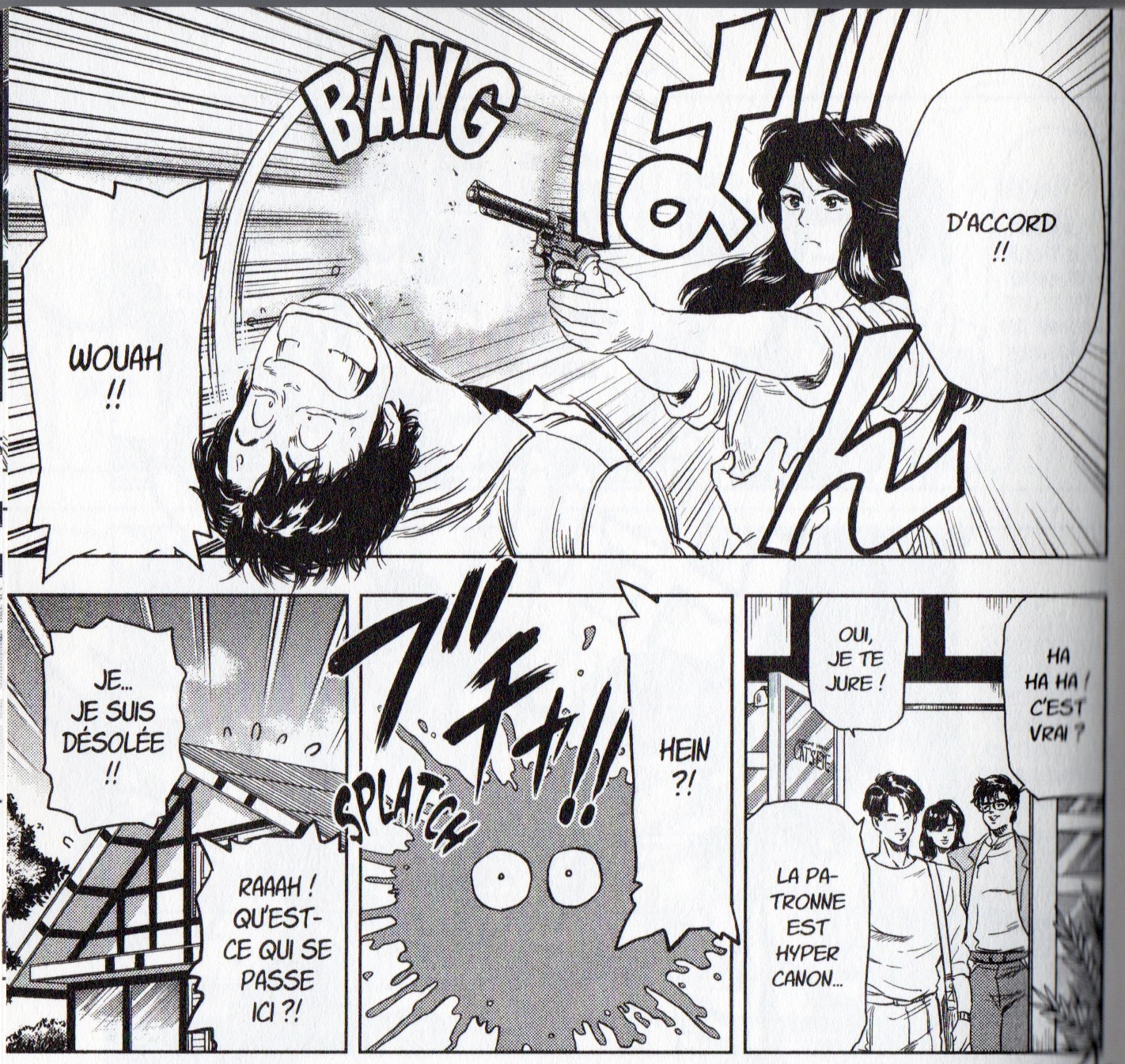 L’occasion aussi pour les plus jeune de découvrir le Ryo Saeba du manga dans de bonnes conditions, les premiers volumes de l’œuvre originale ayant tout de même un peu mal vieilli. Ici, le dessin est net, impeccable, tout en pastichant assez parfaitement le style de Tsukasa Hojo, autant graphiquement que dans le ton. On n’échappe pas aux grivoiseries, gommées de la série télé en France, qui ont pourtant largement participé au succès du personnage.
