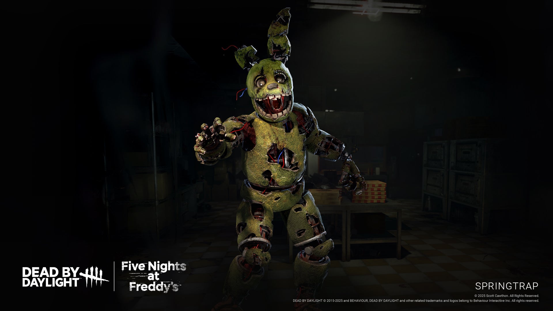 Au cœur de ce nouveau chapitre trône Springtrap, figure emblématique et antagoniste ultime de l’univers Five Nights at Freddy’s. La légende macabre quitte donc les couloirs figés des pizzerias Freddy Fazzbear’s pour s’inscrire pleinement dans une boucle de gameplay jouable. Et il ne vient pas les mains vides : armé d’un inquiétant couteau à pizza et, surtout, d’une lourde hache de pompier, ce nouveau tueur fait de l’effroi sa spécialité, jouant avec la peur brute du jumpscare, en route pour devenir le nouveau cauchemar des survivants