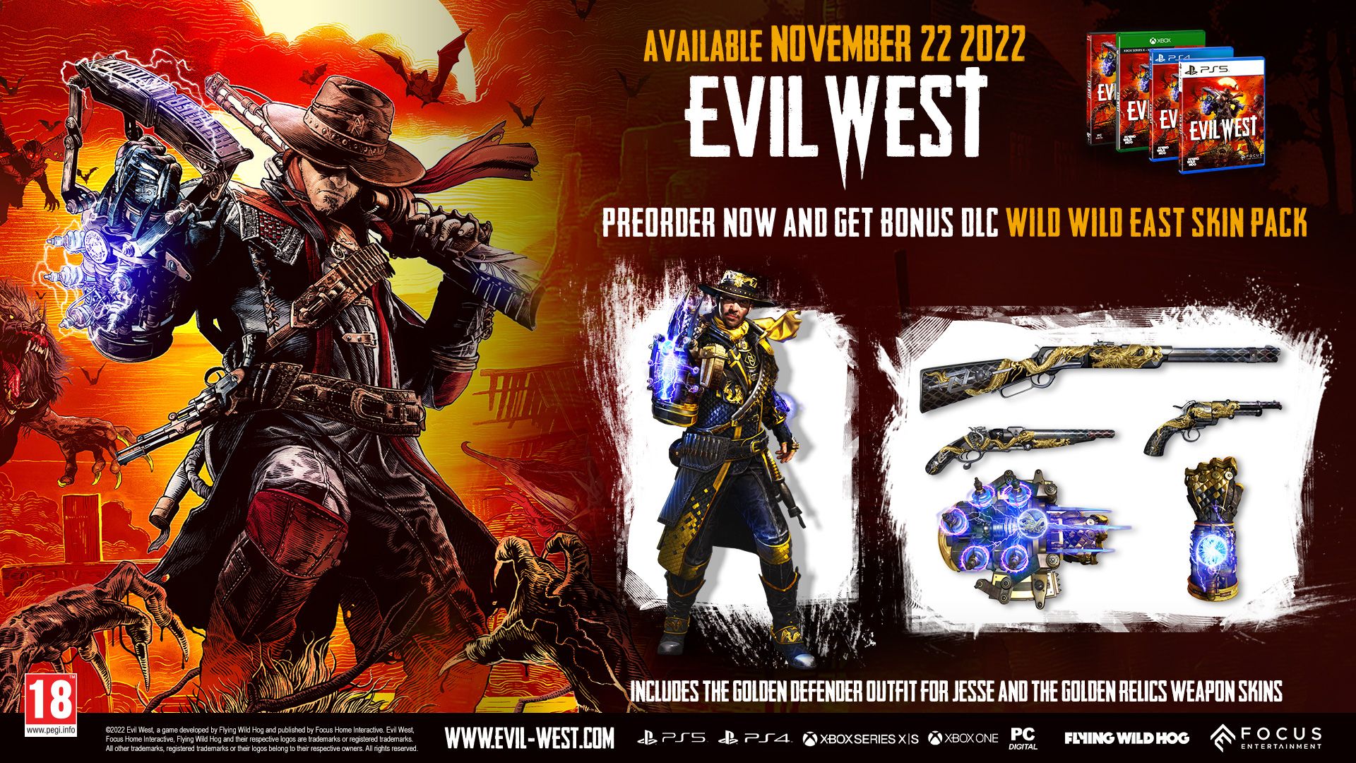 Il y a un an, les studios Flying Wild Hog et Focus Entertainment révélaient au grand jour leur nouveau projet nommé Evil West. Ce jeu d’action/aventure prend place aux États-Unis, à l’époque où les cow-boys se faisaient la guerre, en plein far west. Le joueur est plongé dans la peau du redoutable chasseur de vampires Jesse Rentier, et a pour mission de lutter contre les vampires ayant détruit l’Institut Rentier, une organisation secrète de chasseurs de monstres dirigée par son père et dont Jesse est l’agent.