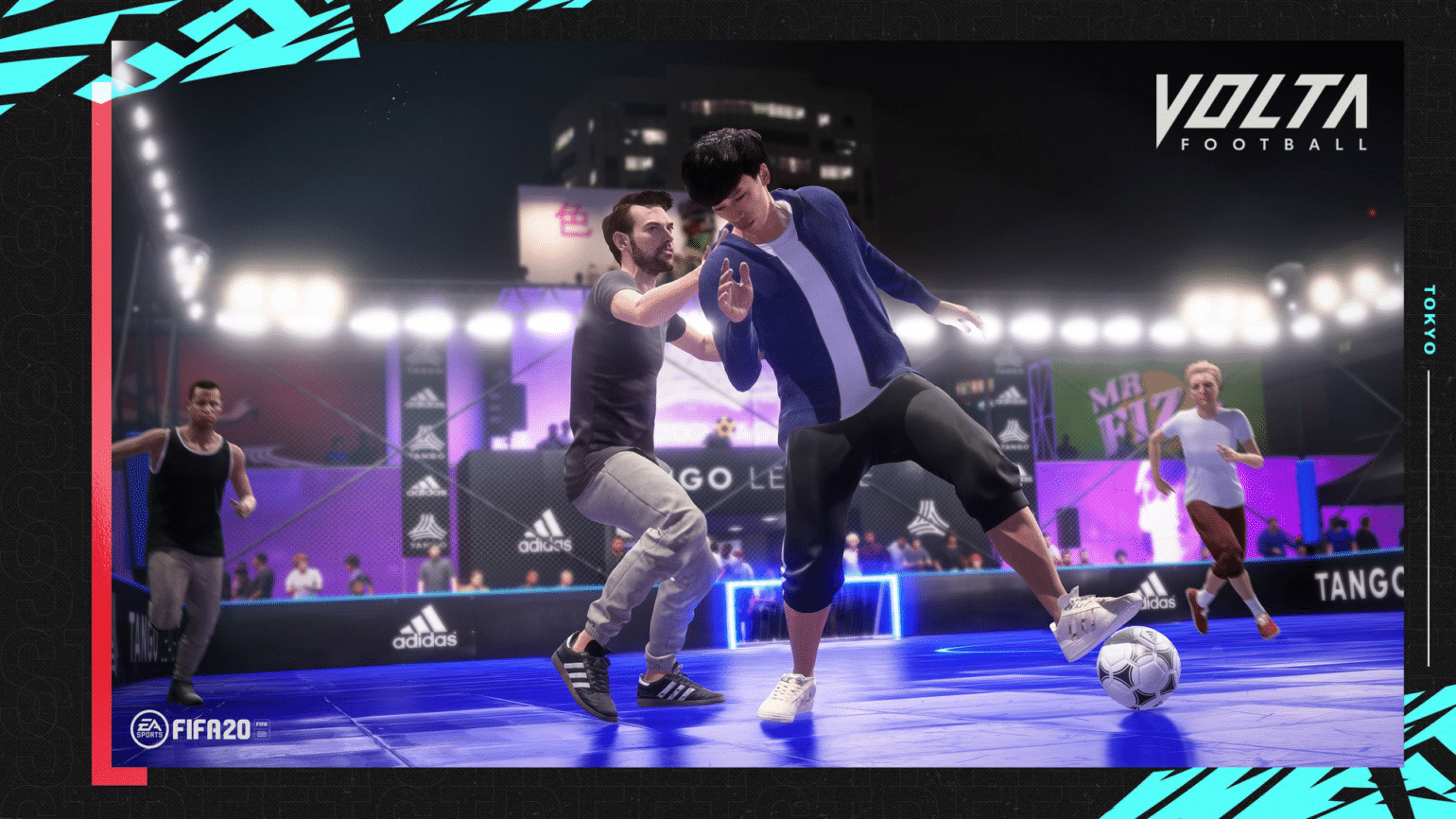 Nous voilà donc maintenant avec VOLTA Football, qui en plus de face à face dans votre quartier, vous proposera des matchs de futsal. Vous retrouverez aussi des règles simplifiées, des mécanismes de balle personnalisés, des environnements variés, différents types de matchs (Goal Volant, Street avec gardien, Futsal) avec beaucoup de style, qui rendent l’expérience encore plus authentique. Vous pourrez même choisir parmi une variété de règles spéciales, comme des victoires en fonction de d’objectif, un mode Survie, Sans Règles et Premier à X buts. Le mode s’offre même le luxe d’avoir un mode dans un mode avec une histoire propre à VOLTA.