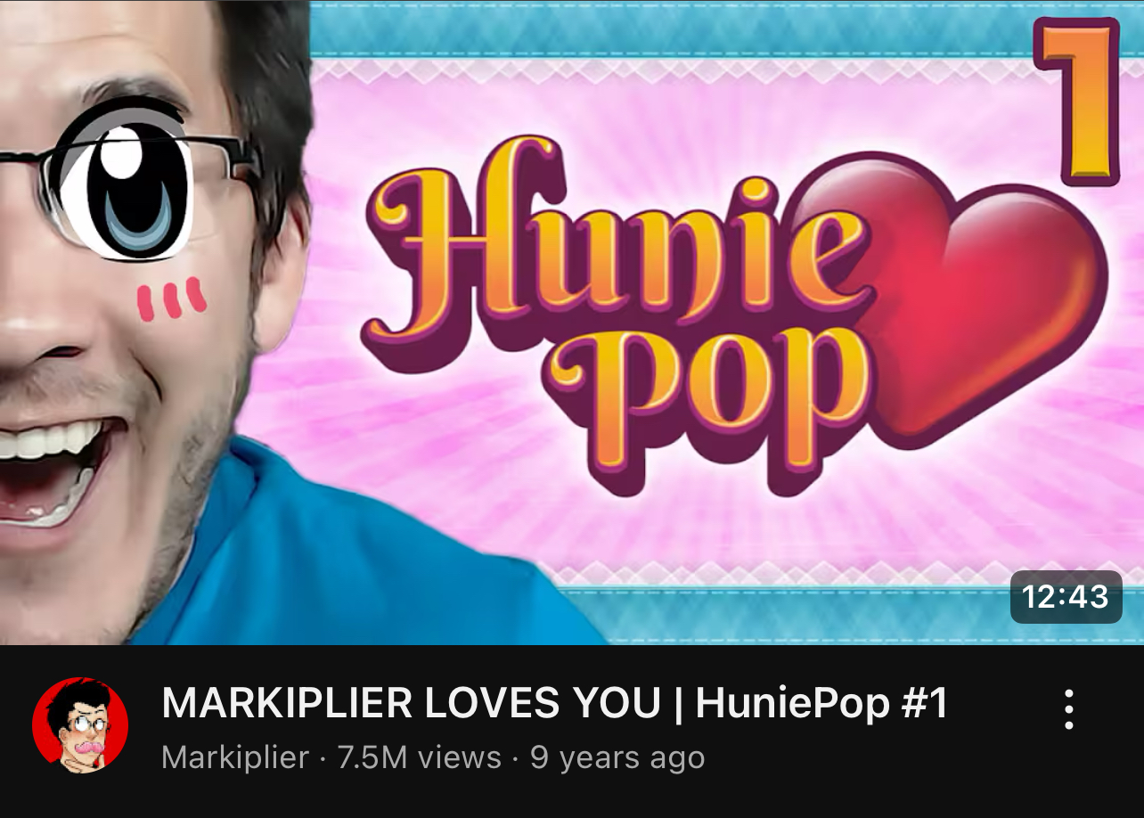 Le deuxième est HuniePop, un jeu de puzzle doublé d’un visual novel érotique. Sorti en 2015, sa similarité dans son gameplay avec Candy Crush, sorti 3 ans avant et ayant déjà envahi les comptes Facebook du monde entier, l’a popularisé auprès d’un public jeune, pas encore bien habitué à voir des scènes NSFW dans des jeux vidéo. Il a acquis lui aussi au fil des années un statut culte, puisque son gameplay était assez stratégique pour qu’il ne soit pas réduit à un simple jeu pornographique, tant et si bien qu’une suite est sortie en 2021.