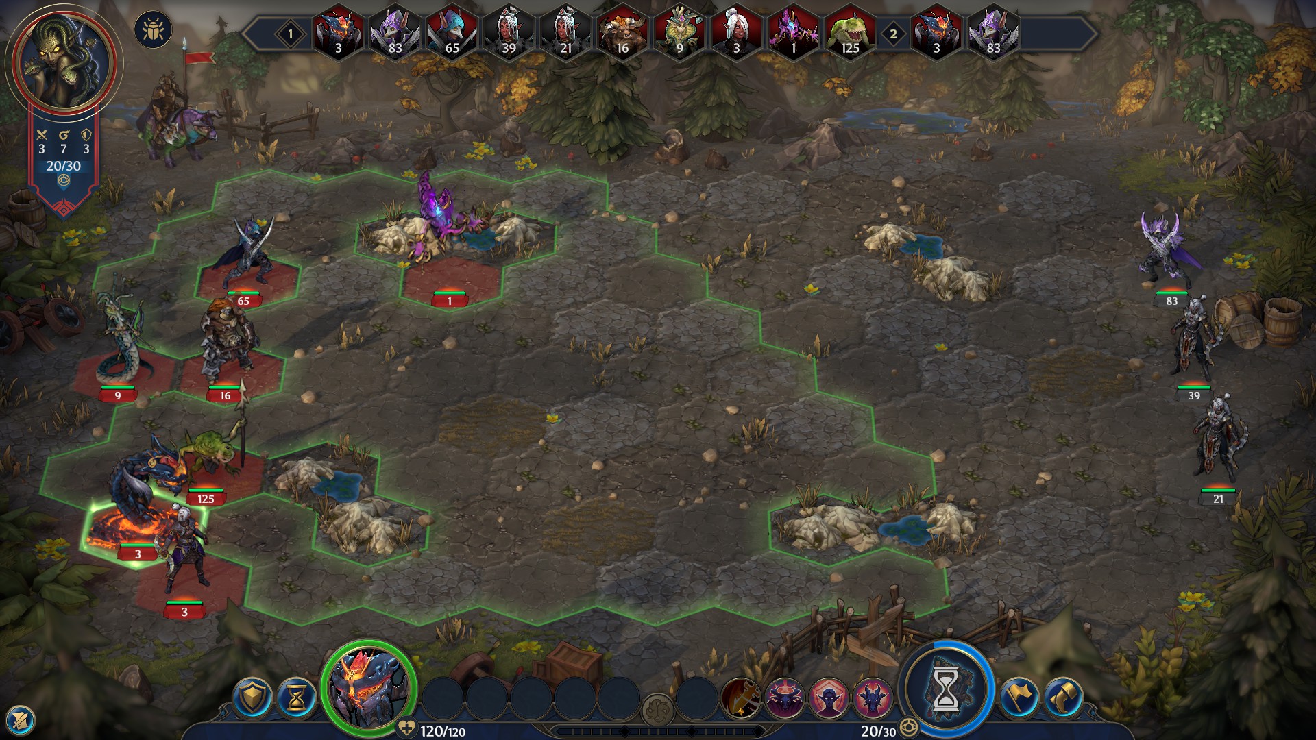 Chaque faction propose 18 héros, qui bénéficient chacun d’un atout particulier, comme des bonus accordés à certaines unités ou des sorts débloqués au début de votre partie. Socle de la franchise, le sentiment de progression des héros, qui vont apprendre des compétences, sorts et s’équiper d’artefacts au cours de la partie, est bien présent dans cette démo.