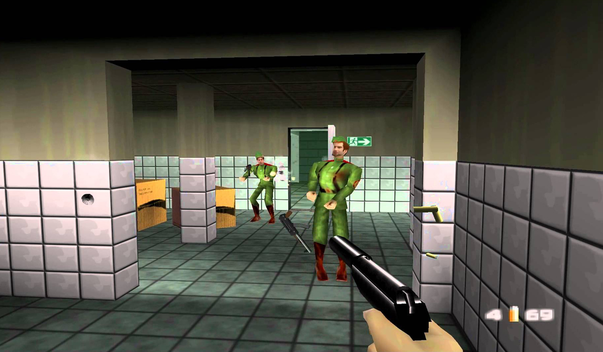Tout commence avec le légendaire GoldenEye 007, une adaptation culte du film de James Bond avec Pierce Brosnan. Le jeu connaît un immense succès, notamment grâce à ses missions variées, mais surtout grâce à son multijoueur local à 4 joueurs en écran splitté, devenu mythique. Aujourd’hui encore, l’influence de GoldenEye 007 est visible dans les FPS modernes : c’est le premier jeu à introduire l’assistance à la visée, mais aussi à différencier les dégâts selon les parties du corps touchées. Si aujourd’hui vous pouvez faire des headshots qui tuent instantanément vos adversaires, c’est en grande partie grâce à Rare !