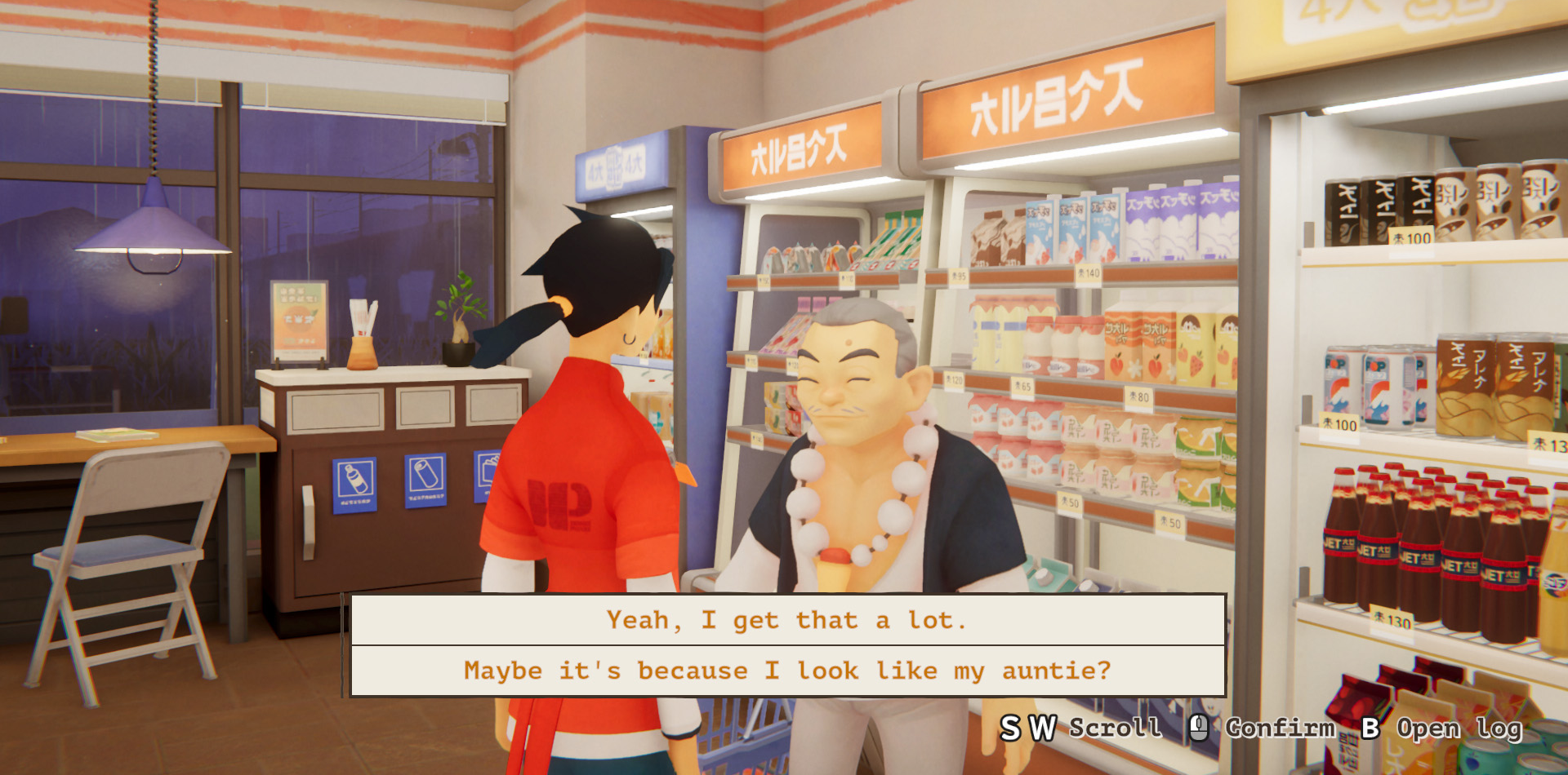 Le gameplay proposé est donc routinier et satisfera les fanatiques d’organisation, comme dans Unpacking, vous pourrez déplacer et réarranger vos produits comme bon vous semble. Certains client.es vous demanderont conseil sur tel ou tel article, et il sera important de connaître vos rayons comme votre poche. Gardez un œil sur votre stock afin d’empêcher une pénurie de bentos par exemple, et pensez à passer commande via le téléphone afin de toujours satisfaire vos habitué.es. Le téléphone ne vous servira pas uniquement à contacter votre livreur mais aussi à appeler votre tante et prendre des nouvelles des client.es avec qui vous avez noué une amitié sincère. Malgré sa taille réduite, le konbini contient plusieurs zones interactives : l’entrée principale, la zone de vente, la réserve, la caisse… Il est même doté d’une machine typiquement japonaise et qui en ravira plus d’un.e : un gacha!