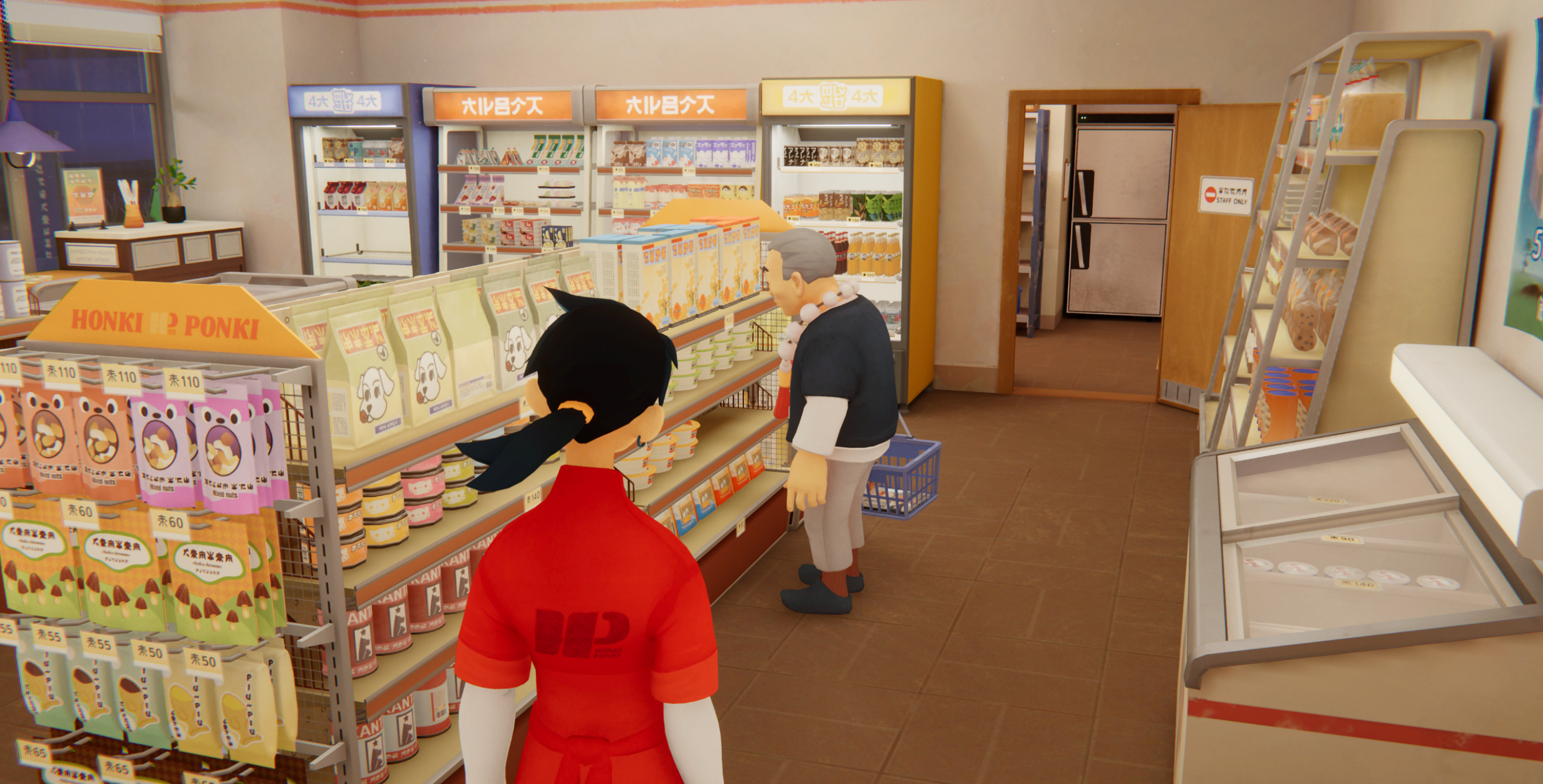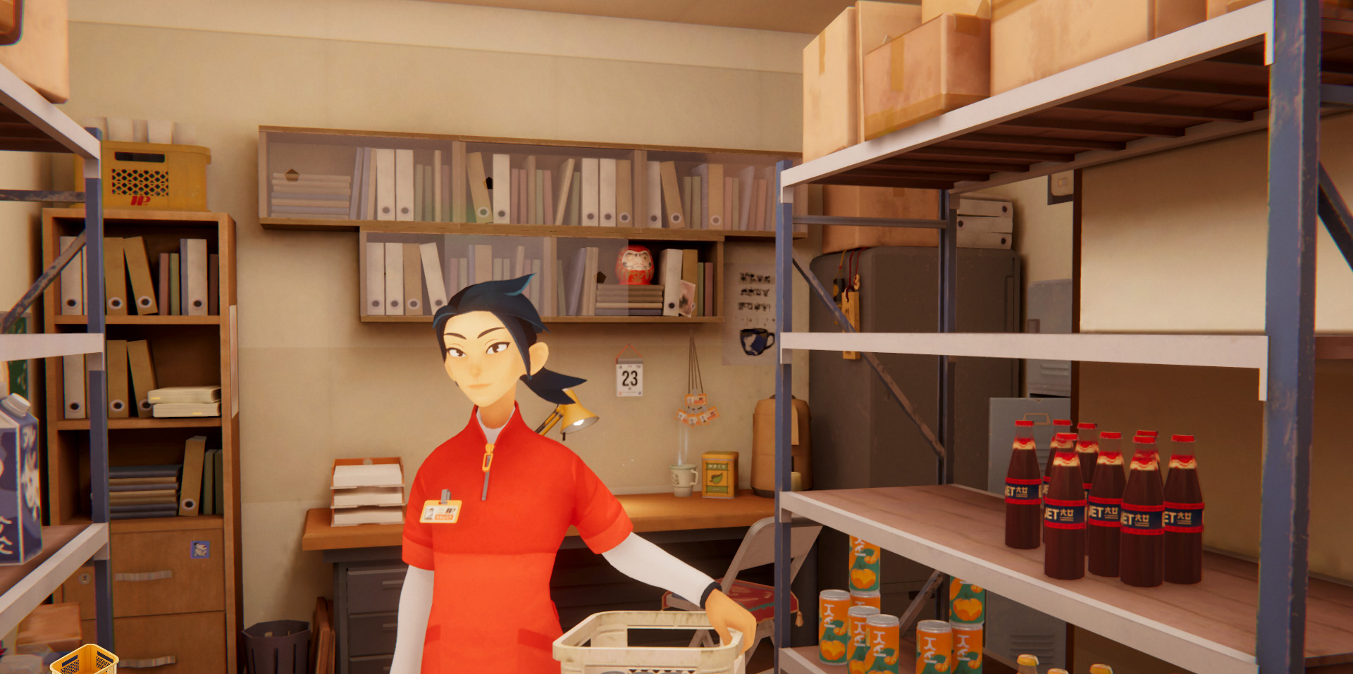 Le gameplay proposé est donc routinier et satisfera les fanatiques d’organisation, comme dans Unpacking, vous pourrez déplacer et réarranger vos produits comme bon vous semble. Certains client.es vous demanderont conseil sur tel ou tel article, et il sera important de connaître vos rayons comme votre poche. Gardez un œil sur votre stock afin d’empêcher une pénurie de bentos par exemple, et pensez à passer commande via le téléphone afin de toujours satisfaire vos habitué.es. Le téléphone ne vous servira pas uniquement à contacter votre livreur mais aussi à appeler votre tante et prendre des nouvelles des client.es avec qui vous avez noué une amitié sincère. Malgré sa taille réduite, le konbini contient plusieurs zones interactives : l’entrée principale, la zone de vente, la réserve, la caisse… Il est même doté d’une machine typiquement japonaise et qui en ravira plus d’un.e : un gacha!