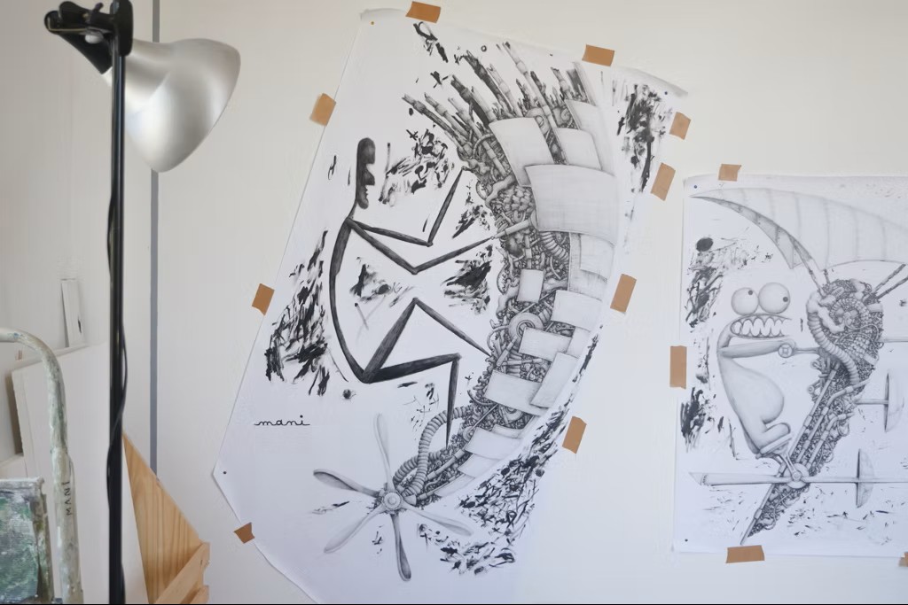 M – Moi c’est Mani, je suis artiste. Je développe depuis des années un univers graphique en noir et blanc, à travers des tableaux, du street art, du tatouage… Et je suis le directeur artistique sur Micromega. Je dessine et anime tous les assets du jeu.