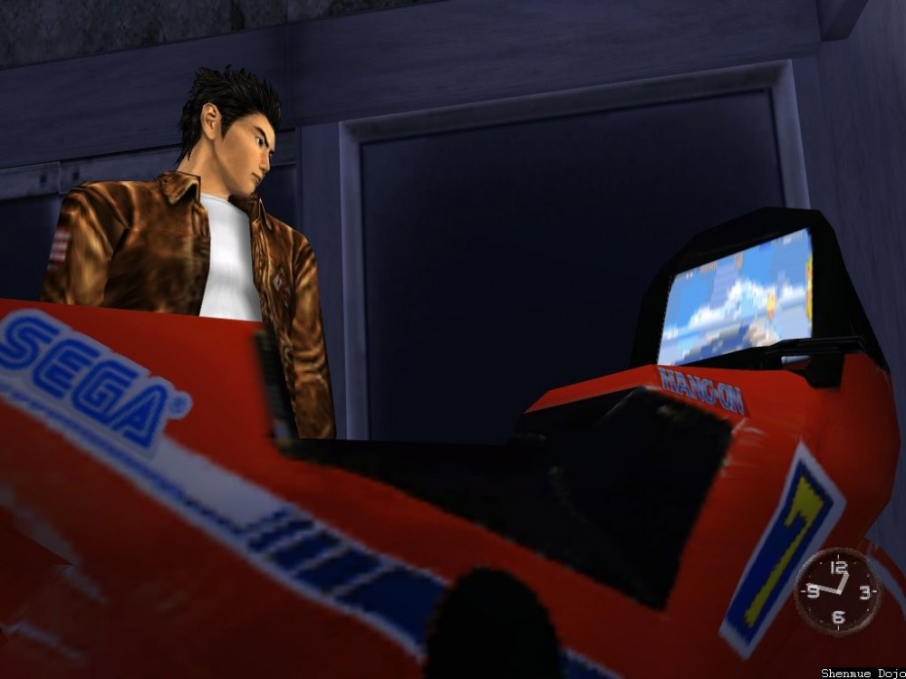 Développé et édité par Sega, Outrun est l’un des premiers jeux de course automobile à faire sensation dans les salles d’arcade, 13 ans après Astro Race, le premier des jeux de course recensés. Assis dans votre voiture, les mains sur le volant et les pieds sur les pédales de la borne d’arcade, vous conduisez votre Ferrari rouge en charmante compagnie. L’objectif est simple, rallier la fin du parcours divisé en 5 stages. La difficulté réside sur la limite de temps imposée pour atteindre les checkpoints intermédiaires ne permettant quasiment aucun raté. Une fois la ligne franchie qui se retrouve être en réalité bloquée par un troupeau de dromadaires, un gentil monsieur vous apporte une lampe magique que vous vous empressez de frotter pour réaliser votre vœu le plus cher : être entouré de jolies nanas. Un jeu de course vraiment efficace qui sera ensuite adapté sur différentes plateformes. Outrun est sorti un an après Hang On, toujours développé par Sega qui repose sur le même principe mais pour le coup, aux commandes d’une moto. Ce jeu ne vous est pas inconnu ? Sachez que les deux jeux, Outrun et Hang On ont été créés par Yu Suzuki, qui n’est autre que le père de Shenmue ! Vous pouvez d’ailleurs jouer à Hang On dans Shenmue I dans la salle d’arcade de Dobuita ou dans le salon de Ryo sur sa console (dans le cas où vous auriez remporté le jeu dans la supérette du quartier).
