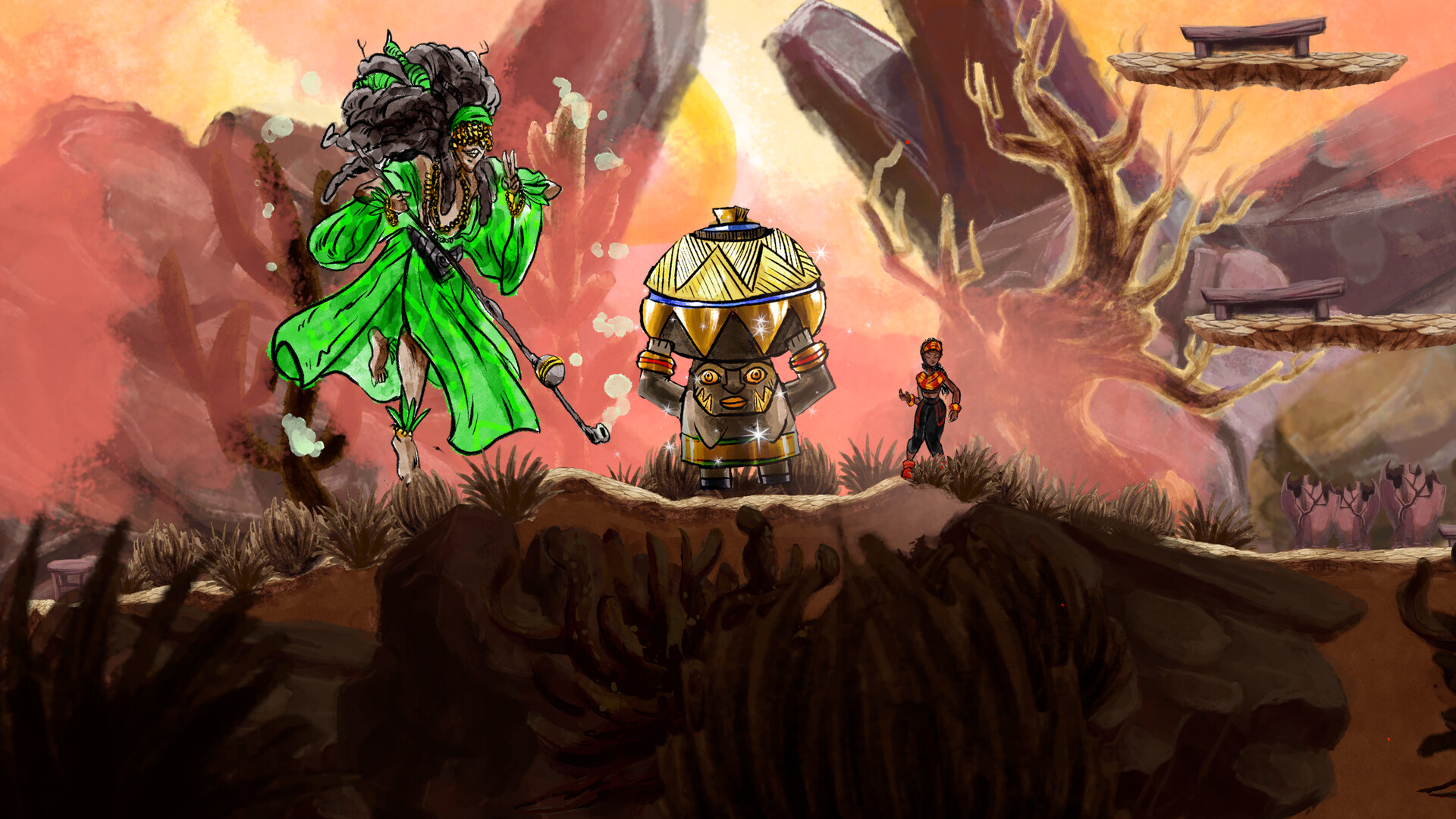 Avec Talaka, les joueurs sont invités à plonger dans un Rogue-like coloré aux influences afro-brésiliennes, encore rarement représentées dans le jeu vidéo. Le titre puise dans les croyances liées aux orixás, ces divinités issues des traditions yoruba et largement présentes dans des religions comme le candomblé. Au-delà de son cadre culturel, Talaka peut séduire par sa direction artistique à l’aquarelle marquée et son atmosphère onirique. À travers ses environnements vibrants et sa narration empreinte de symbolisme, le jeu semble vouloir retranscrire la richesse spirituelle des traditions.