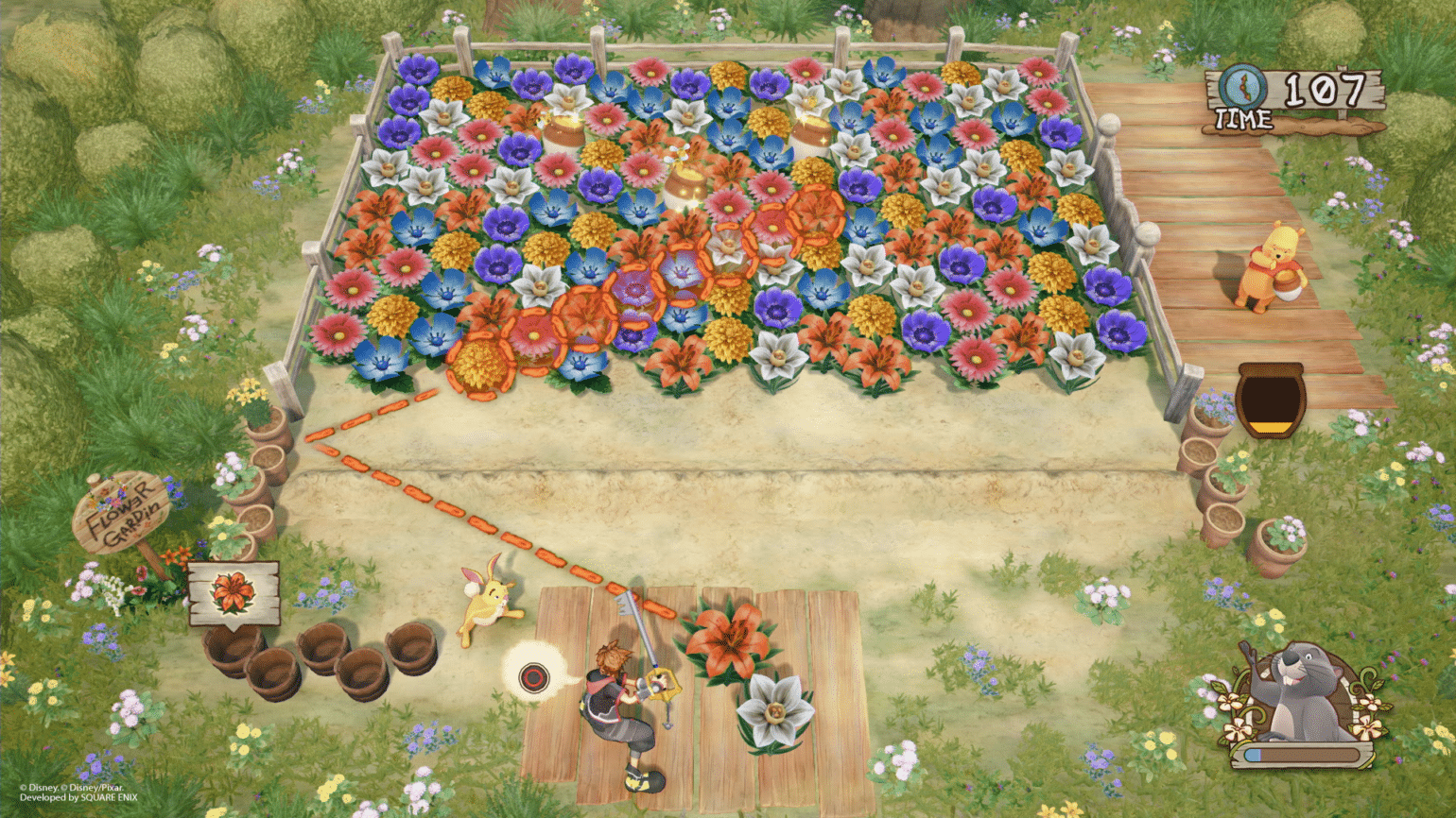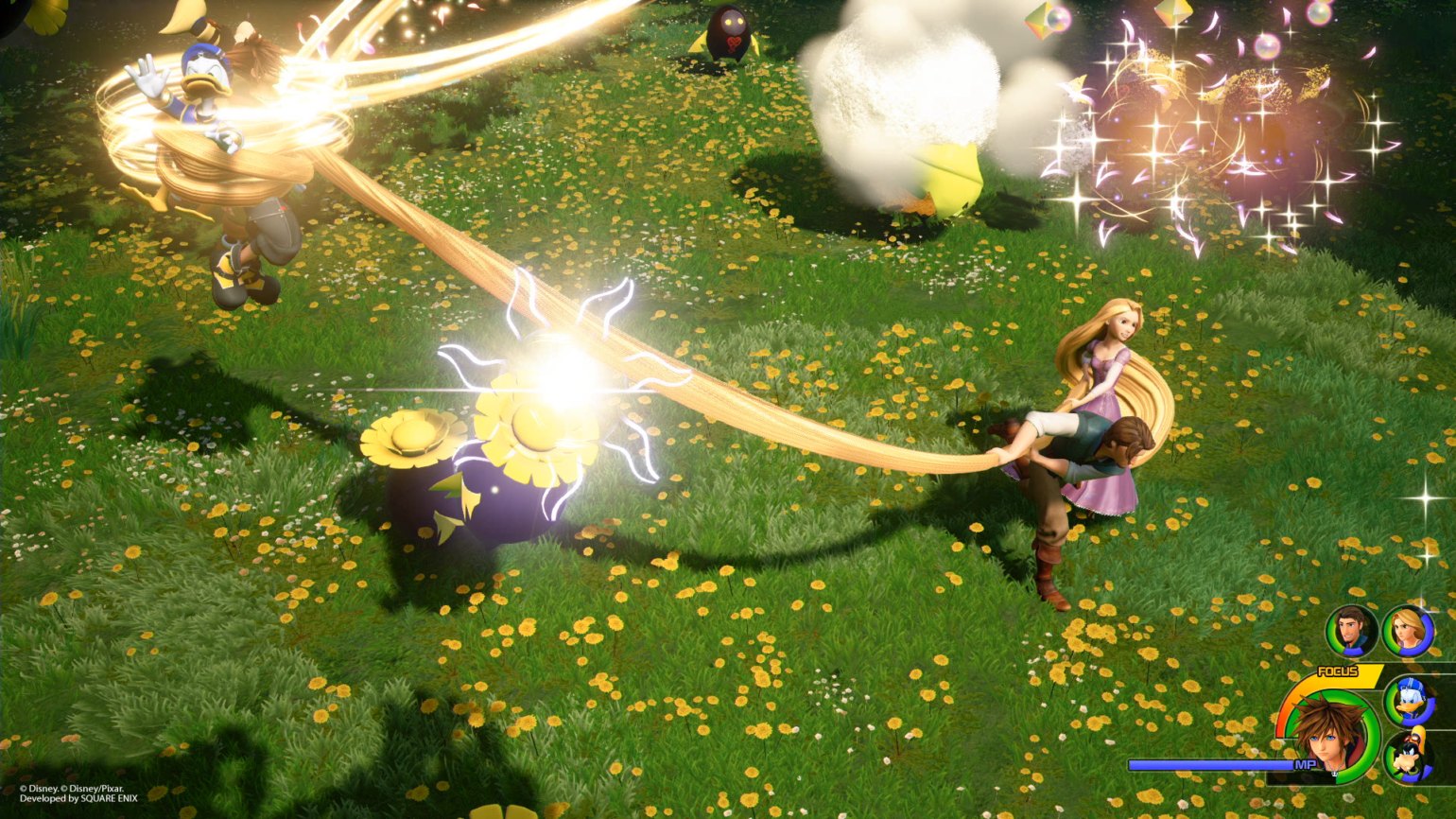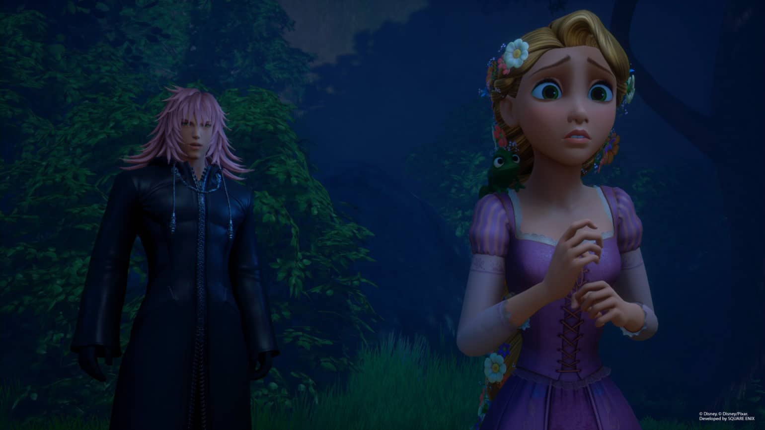 Un peu auparavant, en novembre, Square Enix avait publié une série de photos du jeu, mettant en scène entre autres les personnages de Winnie l’Ourson, ceux de Raiponce, ainsi que Maléfique et Pat Hibulaire.