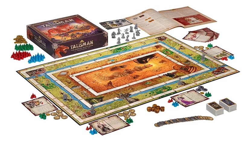Talisman est un jeu édité pour la première fois en 1983, et qui n’a jamais quitté les rayons des magasins spécialisés. S’il en est aujourd’hui à sa quatrième édition, il n’a en 35 ans connu que quelques corrections mineures. Le principe est très proche de celui d’un jeu vidéo, ce qui en fait probablement un matériau de base idéal pour une adaptation d’un jeu comme Kingdom Hearts. Il s’agit ainsi pour les joueurs de progresser à travers différentes régions vers le cœur du plateau, en affrontant à chaque tour des épreuves qui peuvent permettre au personnage de gagner en force, en habileté, ou de remporter de l’or. Au fur et à mesure de la progression, le jeu et ses épreuves se font plus difficiles, jusqu’à l’affrontement final.