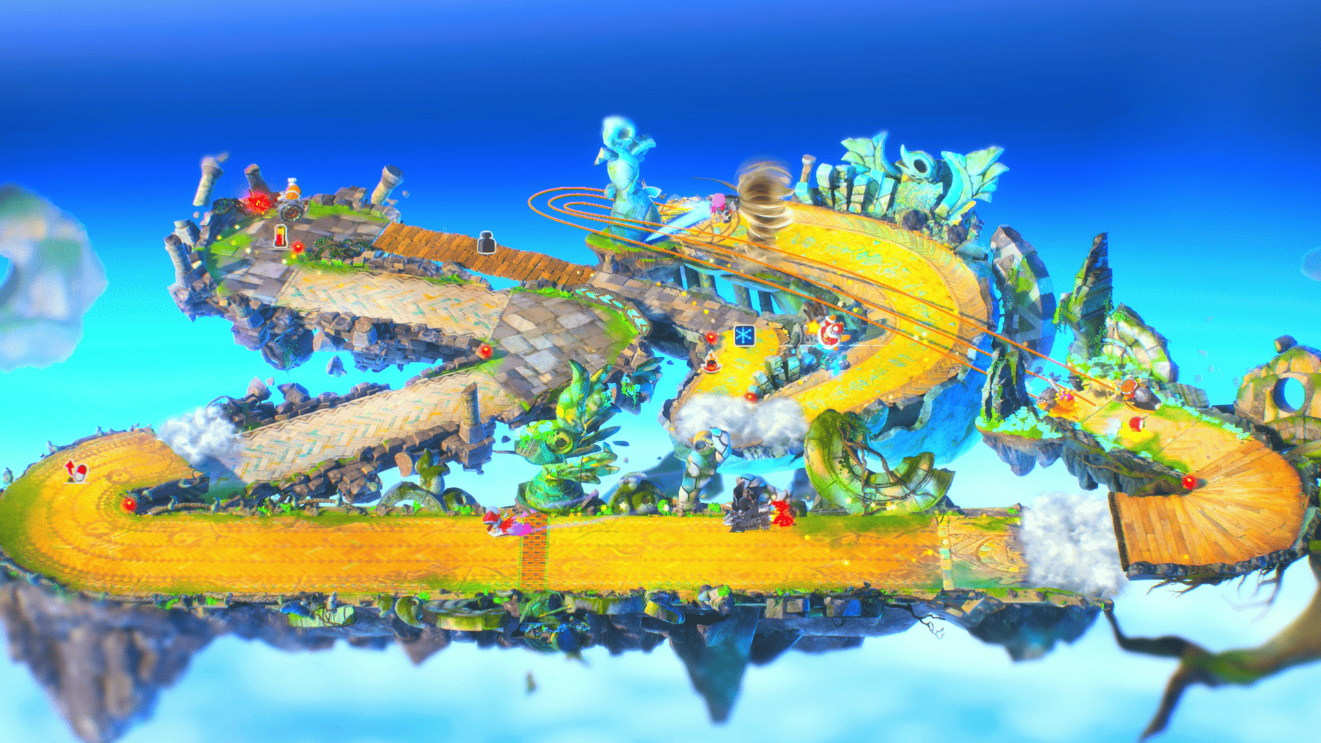 Ce sont bien quatre modes qui seront disponibles dans Kirby Air Riders : les modes Air Ride et City Trials, déjà présentés dans le direct précédent, Top Ride et Road Trip. Dans ce direct, Sakurai a présenté plus en détail les deux derniers. Top Ride est un mode qui revient du jeu d’origine, Kirby Air Ride. Il y sera possible de faire des courses courtes entièrement vues depuis l’au-dessus de la carte.