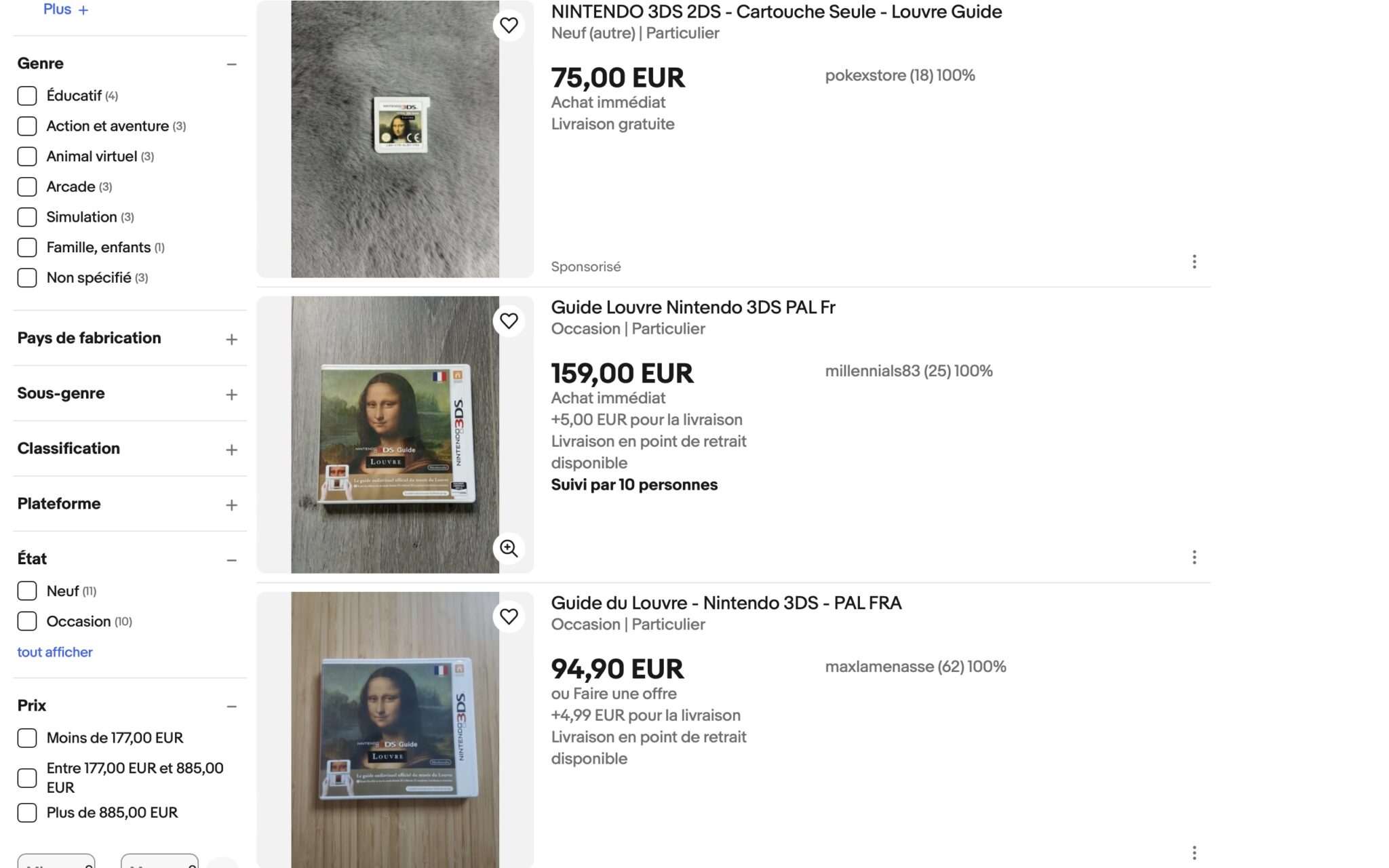On peut se consoler en se disant que cette visite virtuelle ne disparaîtra pas totalement. Fort heureusement, Nintendo avait commercialisé une version physique à l’époque. Mais comme souvent avec les trésors oubliés du jeu vidéo, cette édition est aujourd’hui devenue un véritable objet de collection. Sur eBay, elle se négocie entre 75 € sans boîte et jusqu’à 160 € en édition complète. Alors oui, le support physique aura permis de sauvegarder une trace de cette expérience, mais à ce prix-là, seuls les collectionneurs les plus motivés pourront encore en profiter.
