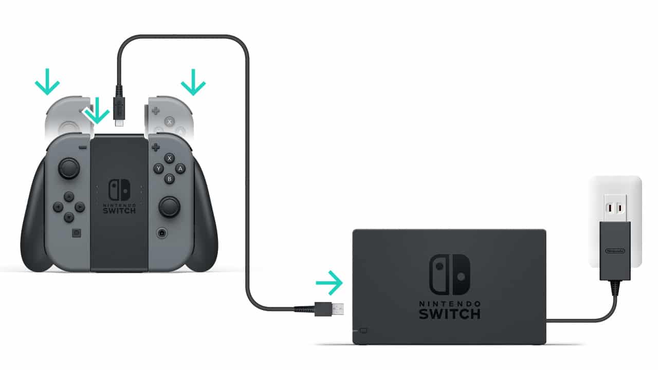 Tous les packs contenant une Nintendo Switch contiennent les éléments suivants : la console, le dock permettant de relier la console à votre téléviseur, un bloc d’alimentation, un câble HDMI, un support pour les Joy-Cons, et bien sûr, une paire de Joy-Cons (les manettes de la consoles). Les deux packs de base de la Nintendo Switch se différencient par la couleur de la paire de Joy-Cons présents dans la boite, une paire grise d’un côté et une paire avec un combo bleu (gauche) et rouge (droite).