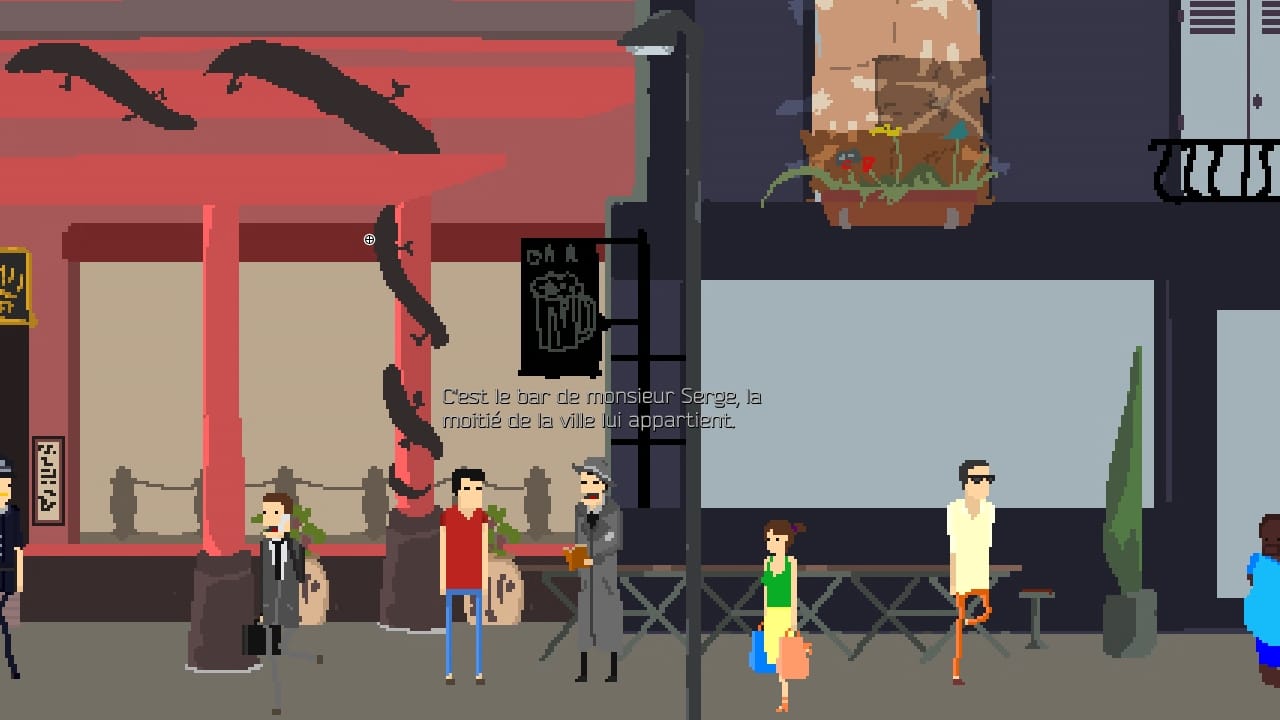 Dans un pixel art sobre, à l’esthétique rétro, Plague nous offre une vision pervertie des narrations point & click des années 90 tel que Monkey Island. Le scénario, éclaté en fragments de vie, s’étale sur une période en temps réel de sept jours, où il faudra développer vos relations avec les différents protagonistes du jeu pour faire avancer une intrigue ubuesque au possible et découvrir tous les petits secrets et références qui agrémentent le jeu.