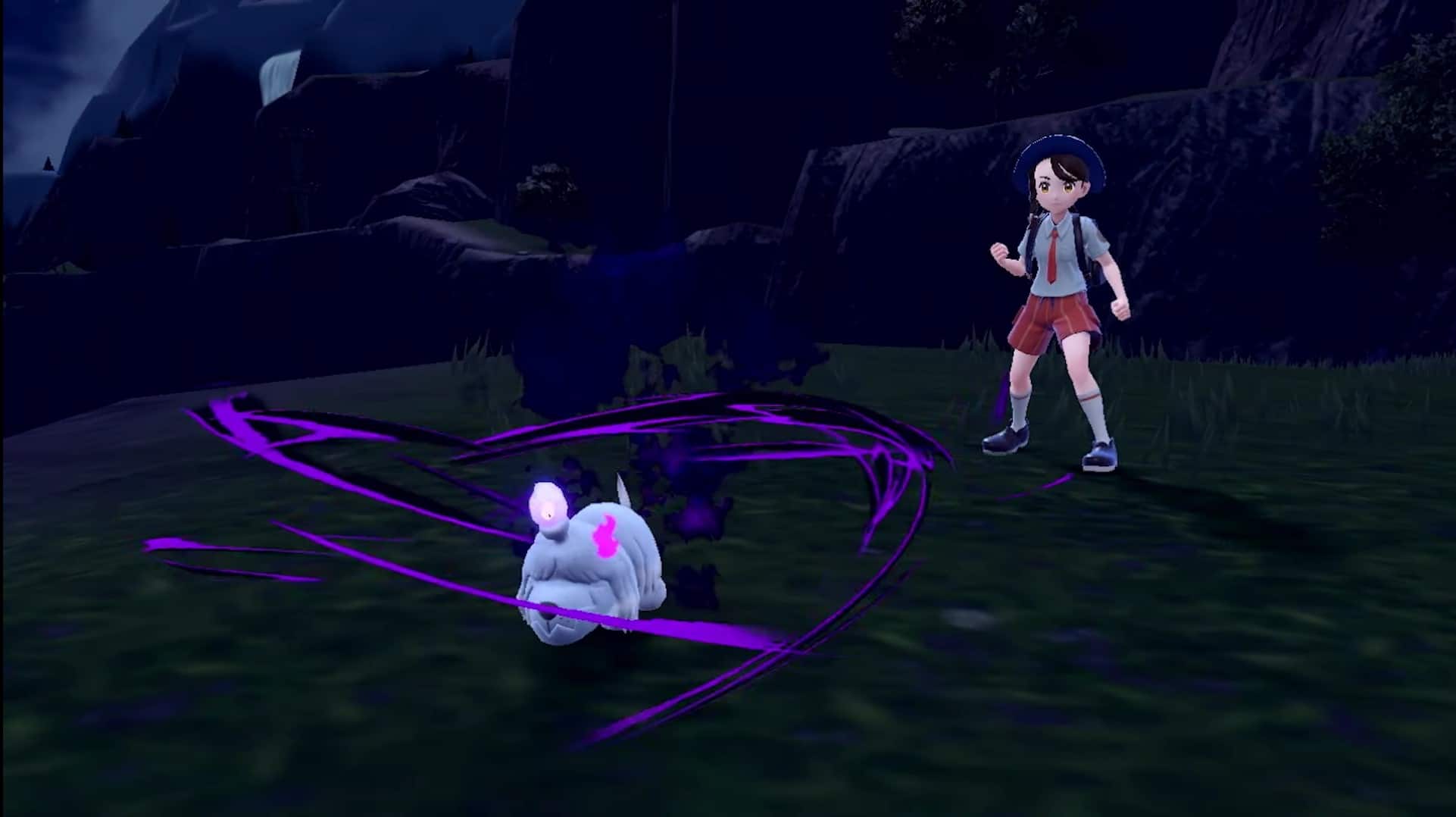 Nous avons d’abord pu visionner une séquence dans laquelle une étudiante de l’académie Orange avait été envoyée en mission pour faire des recherches sur les pokémons de type spectre. Et après être tombée nez-à-nez avec les pokémons bien connus que sont Mimiqui et Ectoplasma, la dresseuse s’est retrouvée face à une nouvelle bouille.