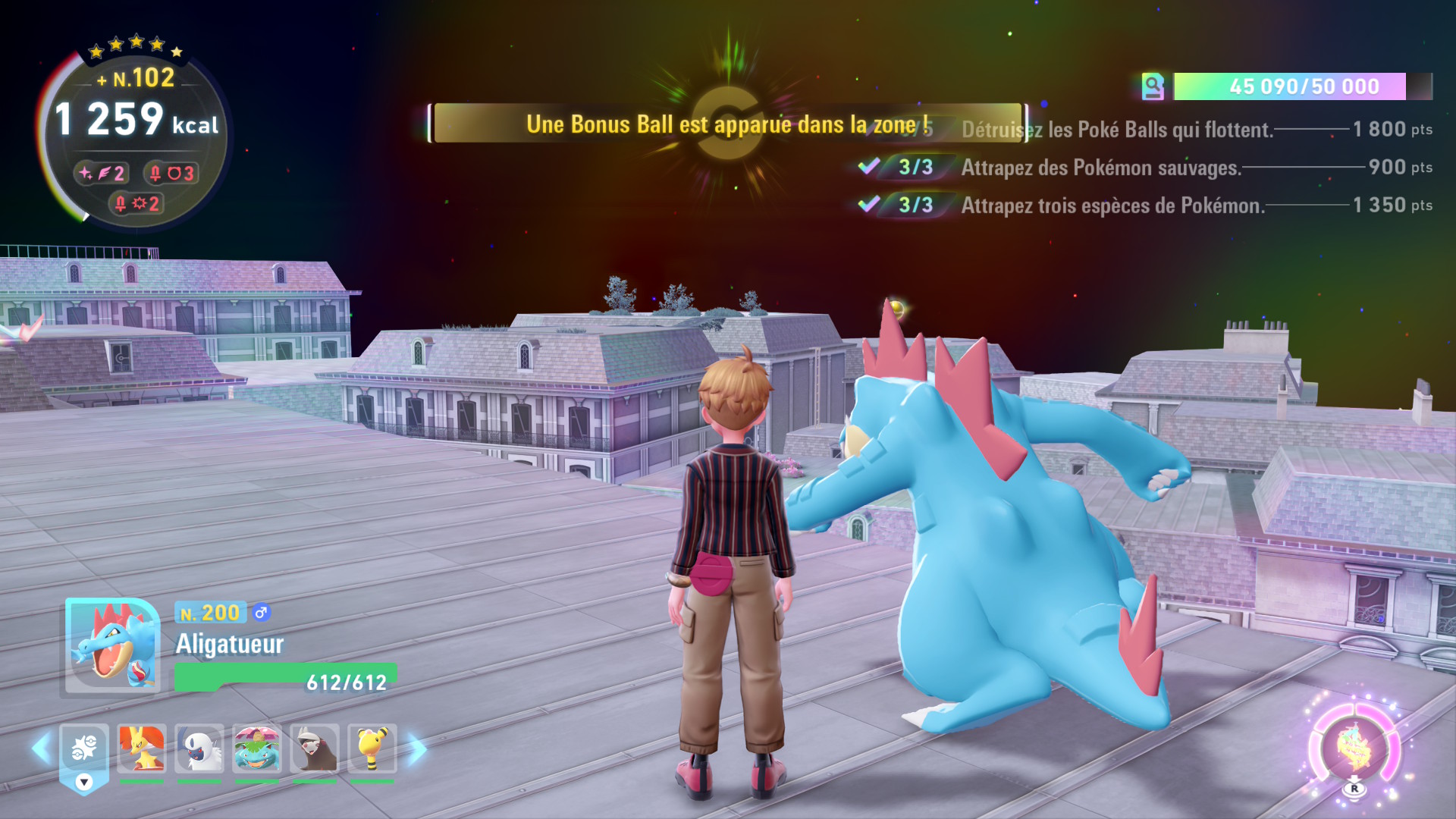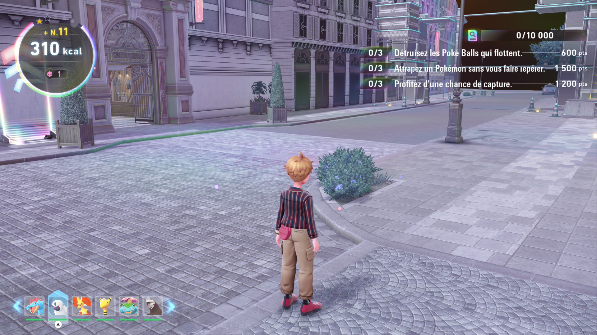 Malheureusement, la variété n’est pas au rendez-vous. Là où le mode Royale Z-A du jeu de base imposait des contraintes intéressantes (types imposés, restrictions d’attaques), les défis de ce DLC se limitent au strict minimum syndical : gagner un combat, lancer une attaque super efficace, capturer x Pokémon, ou casser des pokéballs flottantes (qui vous donneront des baies). C’est plat, répétitif et bien moins inspiré que le jeu d’origine.