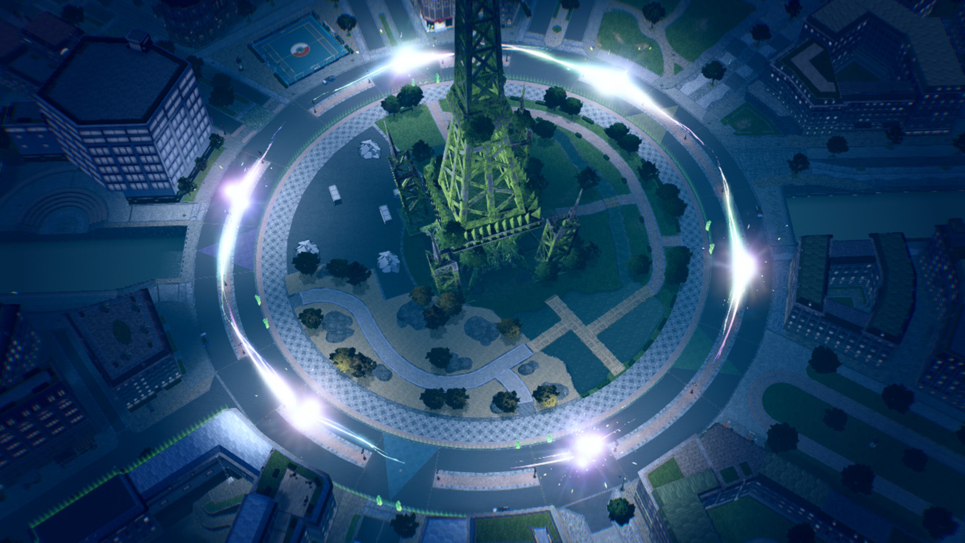 Si Légendes Z-A proposait une Illumis colorée et malgré tout assez grande, Méga-Dimension opère un triste retour en arrière. Comme son nom ne l’indique pas, Extra-Illumis n’est pas une ville cohérente, mais une succession de petites zones instanciées. Pire encore, la direction artistique est en berne. Tout est gris, terne, sans âme, reprenant les assets des bâtiments d’Illumis avec un filtre morose. Là où les extensions précédentes de la licence nous faisaient voyager dans de nouveaux biomes travaillés et dépaysants (on pense au disque indigo ou Couronneige), on se retrouve ici face à un recyclage paresseux et visuellement déprimant qui n’incite pas à l’exploration.