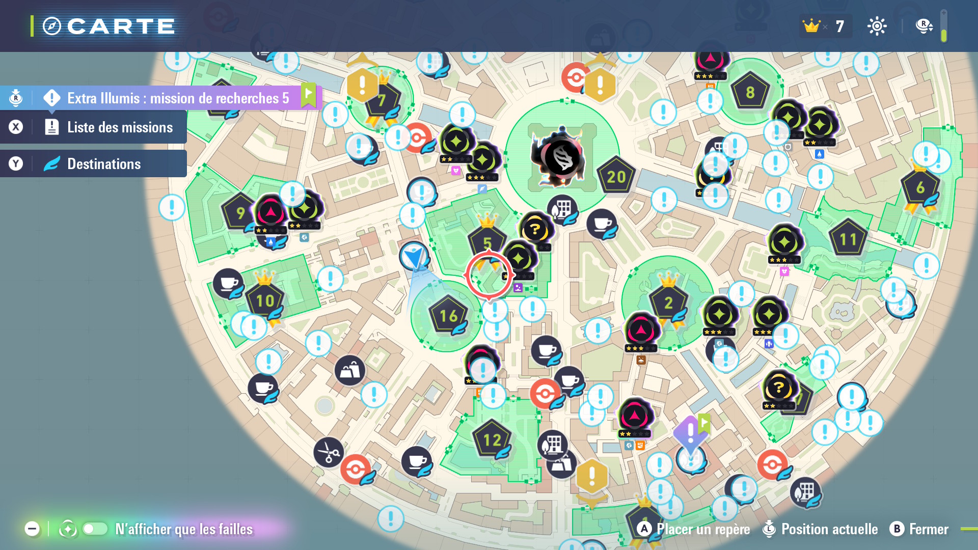 Pour obtenir ces fameux points, il faut enchaîner les défis dans trois types de failles distinctes. Les Failles Normales demandent de la capture classique et de la récupération d’objets, les Failles de Combat imposent des duels contre des dresseurs, et les Failles Annexes demandent de résoudre de petites quêtes, et parfois de combattre des pokémons méga-évolués, mis là-dedans sans raison.