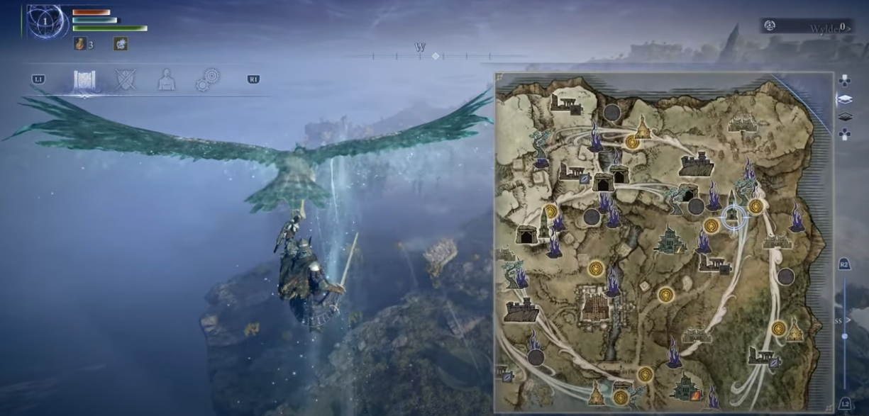 Côté level design (un seul biome, une seul map, était disponible), on a affaire à beaucoup de verticalité. Si on est loin, pour des raisons évidentes, des strates successives de la map du DLC Shadow of the Erdtree, on se rend très rapidement compte que ce coin d’Entre-Terre est très accidenté. Torrent, notre fidèle destrier, n’étant pas de la partie, on se retrouvera souvent au pied d’une falaise infranchissable et il faudra alors trouver le courant ascendant le plus proche pour pouvoir s’élever dans les airs, franchir l’obstacle, et ainsi échapper au voile de mort ou au groupe de mobs trop puissants qui nous poursuit. Mais voilà, on aimerait pourtant arpenter à notre rythme, et apprécier à leur juste valeur, chaque recoin, chaque sentier de ces nouvelles contrées mais on comprend vite que l’exploration ne fait pas réellement partie de l’équation.