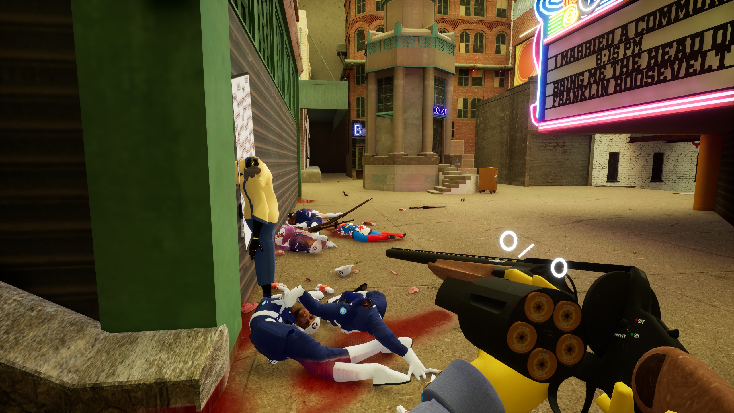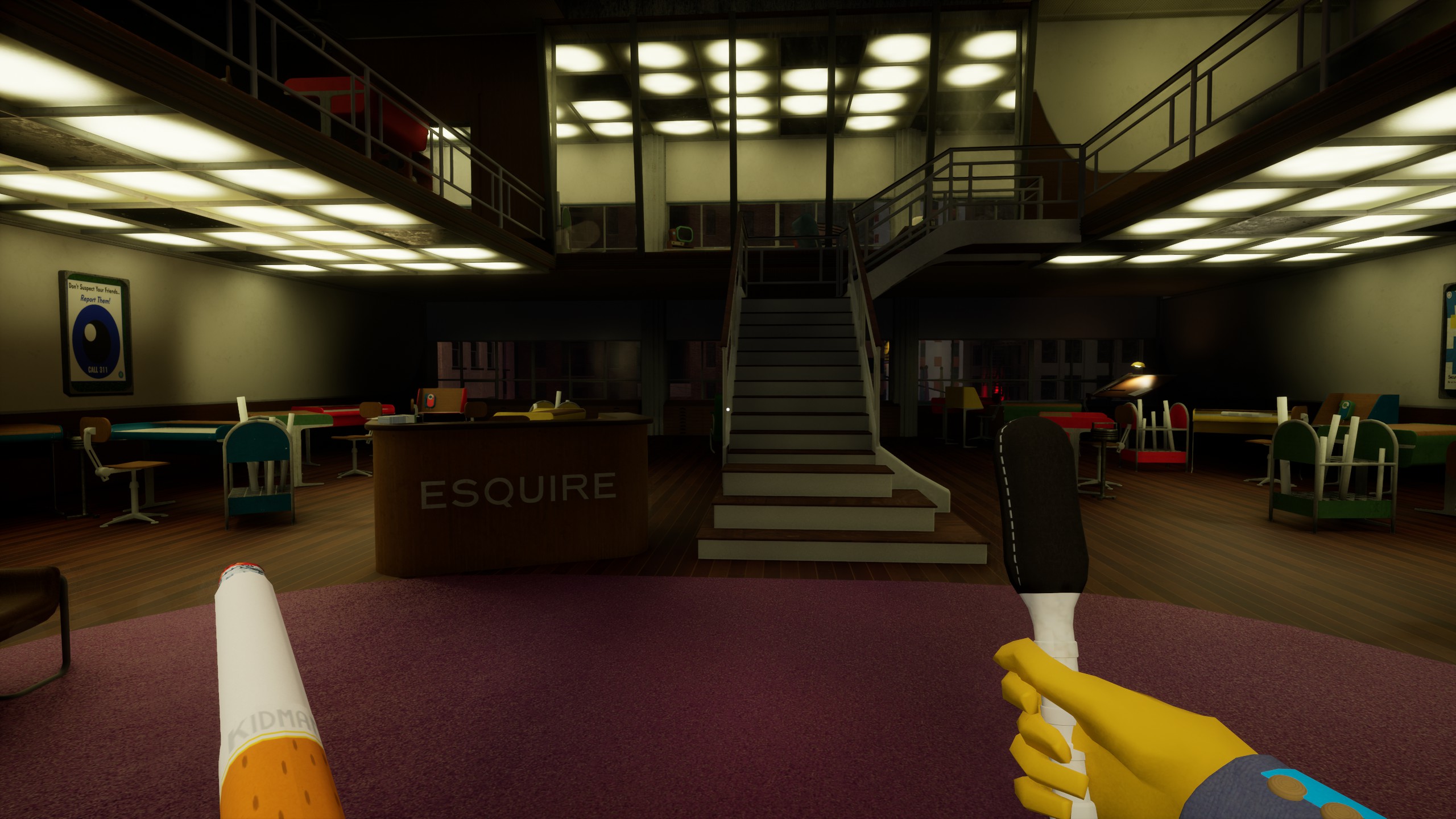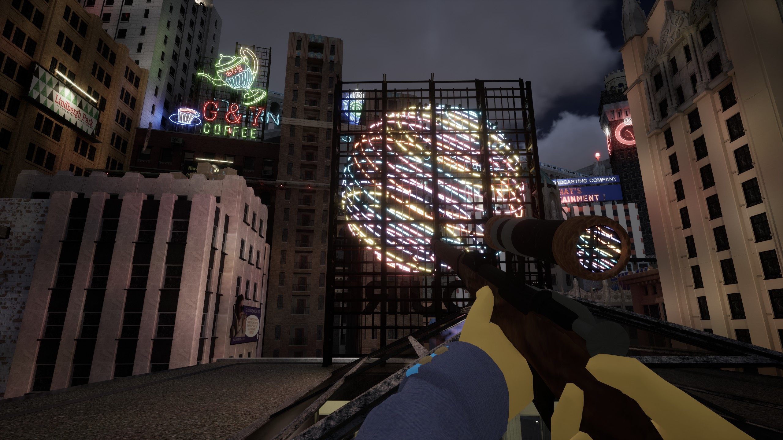 Le level design pousse régulièrement à chercher des chemins inattendus, et certaines idées de gameplay laissent déjà entrevoir un véritable potentiel émergent, malgré une IA ennemie encore (volontairement ?) très limitée. Mention spéciale au pistolet à fléchettes, capable de se planter dans les murs pour créer des prises d’escalade improvisées, ainsi qu’au gant de boxe monté sur ressort, qui propulse le joueur dans les airs à la manière d’un pogo stick et permet d’exploiter pleinement la verticalité des niveaux.