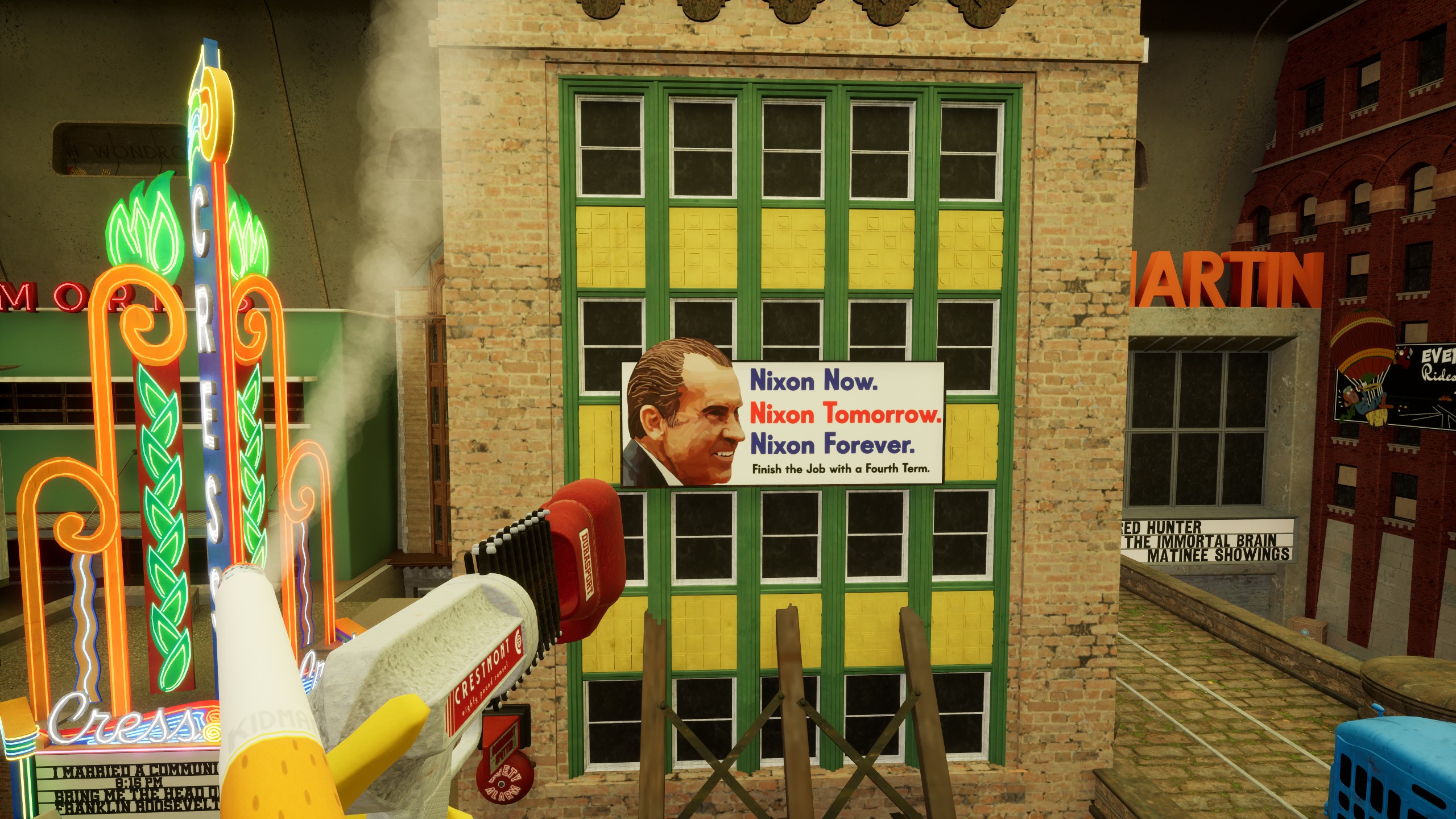 Développé par Ellis Tucci, créatrice indépendante qui documente le projet depuis plusieurs années sur les réseaux sociaux, le jeu prend la forme d’un immersive sim nourri d’uchronie politique. La démo actuellement disponible ne constitue qu’une vertical slice du projet final, mais elle suffit déjà à esquisser un univers visuellement riche et des intentions de gameplay plutôt intéressantes.