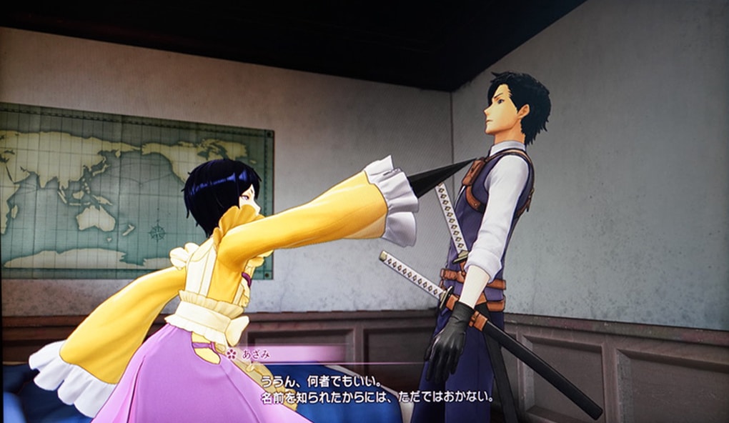 Les personnages possédant un haut niveau de Confiance viendront également porter assistance pendant les combats. Et c’est là qu’intervient une nouveauté assez intéressante. On le sait, la série des Sakura Wars est à la croisée des chemins de plusieurs genres, dont le visual novel. Ici, selon les réponses, mais aussi les comportements du joueur pendant les phases de dialogues, la Confiance des autres personnages pourra, ou non, grimper, et donc avoir un véritable impact sur les futurs phases de combats. La démo présentée par SEGA incluait ainsi une phase de dialogues entre le protagoniste, Seijuro, et Sakura Amamyia (here we go again !). Durant cette scène où Sakura se change, la caméra est dynamique, et le joueur peut choisir de l’épier… Au risque de la voir se mettre en rogne, et de bloquer pour un temps le score de confiance (et donc de se priver de manœuvre de soutien) !