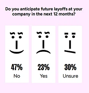 Premier coup de massue : on apprend que 28 % des interrogés ont vécu un licenciement au cours des deux dernières années (le chiffre monte à 33 % quand on se concentre uniquement sur les États-Unis). Si cette statistique est déjà impressionnante en soi, elle l’est d’autant plus quand on la compare avec le rapport de l’année 2024, où elle ne concernait que 7 % des répondants !