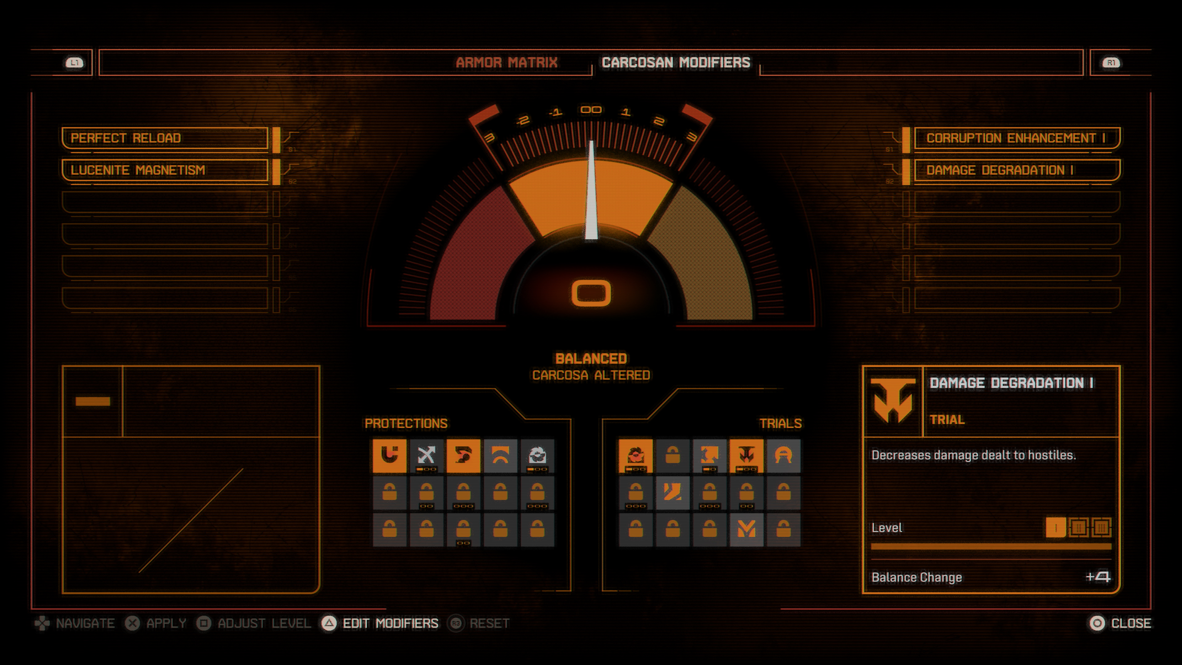 Fini la perte totale de progression : vous pourrez désormais dépenser vos ressources pour débloquer définitivement des bonus de statistiques, de l’armure, ou la très précieuse « Seconde Chance ». Mais la grande nouveauté réside dans la personnalisation de la difficulté. Via le Primary, les joueurs pourront activer des modificateurs pour moduler leur expérience.