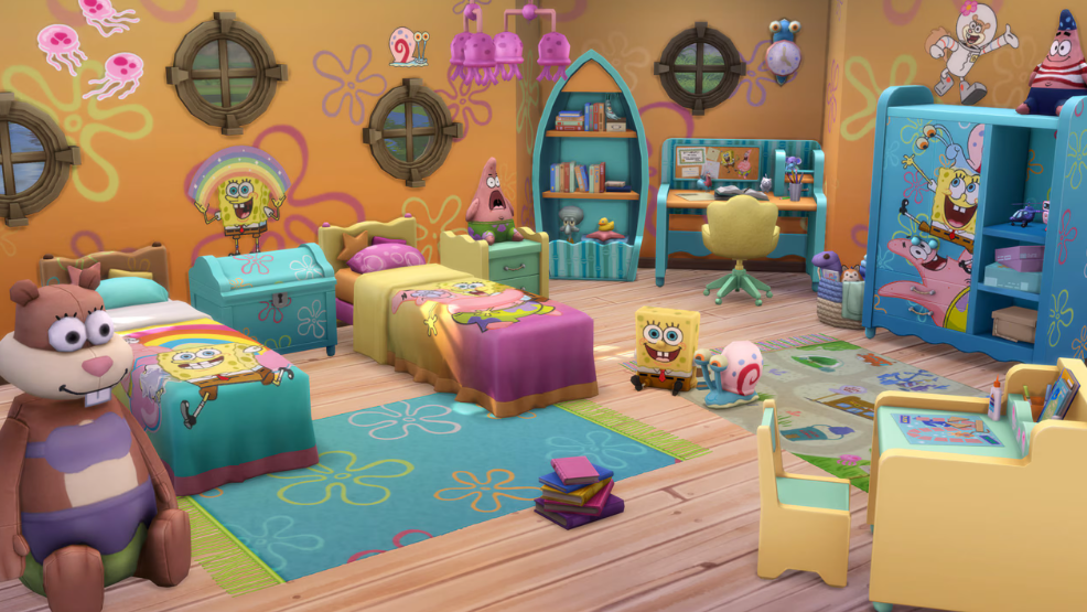 Voici donc de quoi recréer la maison ananas de l’éponge la plus célèbre du monde, avec les meubles iconiques du dessin animé, une porte et une fenêtre, ainsi que les tapisseries qui vont avec. Le kit « Chambre d’enfant Bob l’éponge », quant à lui, vous donnera tout ce qu’il faut pour décorer une chambre à l’effigie de votre héros préféré. Des objets qui pourront être réutilisés dans des contextes plus « passe-partout » avec un peu d’imagination, mais qui, avouons-le, dénotent avec l’univers des Sims 4.