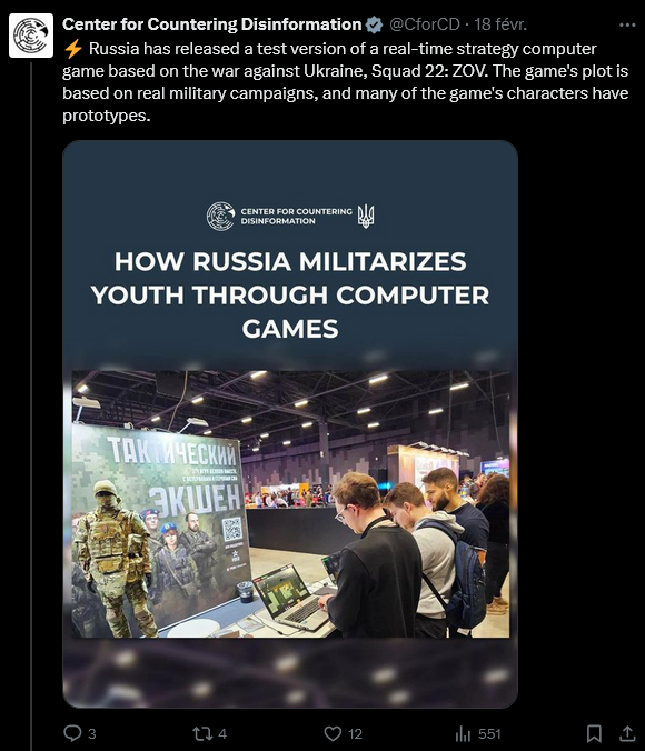 Le Centre pour la lutte contre la désinformation, rattaché au Conseil national de sécurité, a qualifié le jeu, en février dernier, de « véritable outil de militarisation de la société russe », visant à justifier la guerre et à « créer un mythe héroïque autour des forces armées ».