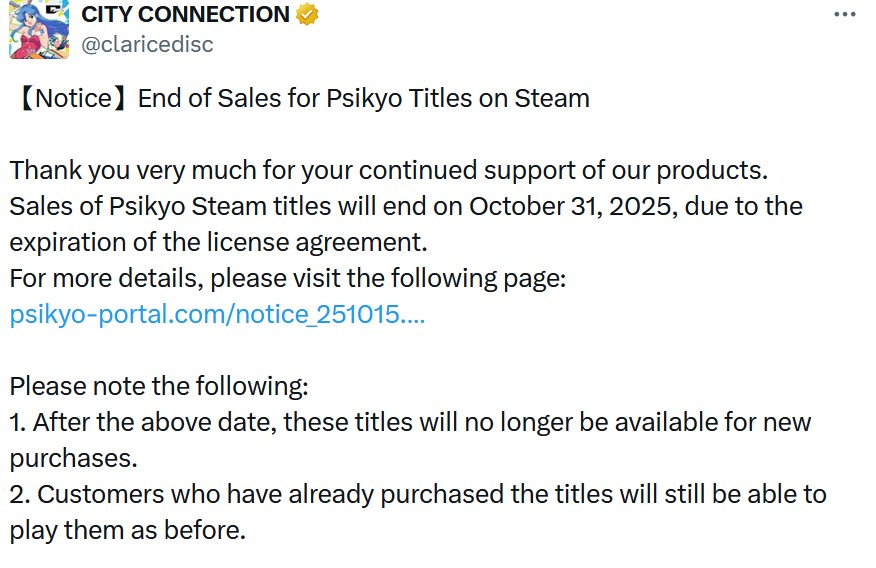 Le 31 octobre prochain, ce sera donc une dizaine de jeux ayant paru dans les salles d’arcades japonaise qui ne seront plus en vente. En revanche, celui qui aura fait l’acquisition d’un de ces titres aura toujours le droit de l’utiliser après la date fixée. Et, quant aux utilisateurs console, il n’y a aucune crainte à avoir de ce côté-là. Les pertes des licences ne concernant en effet que les moutures PC.