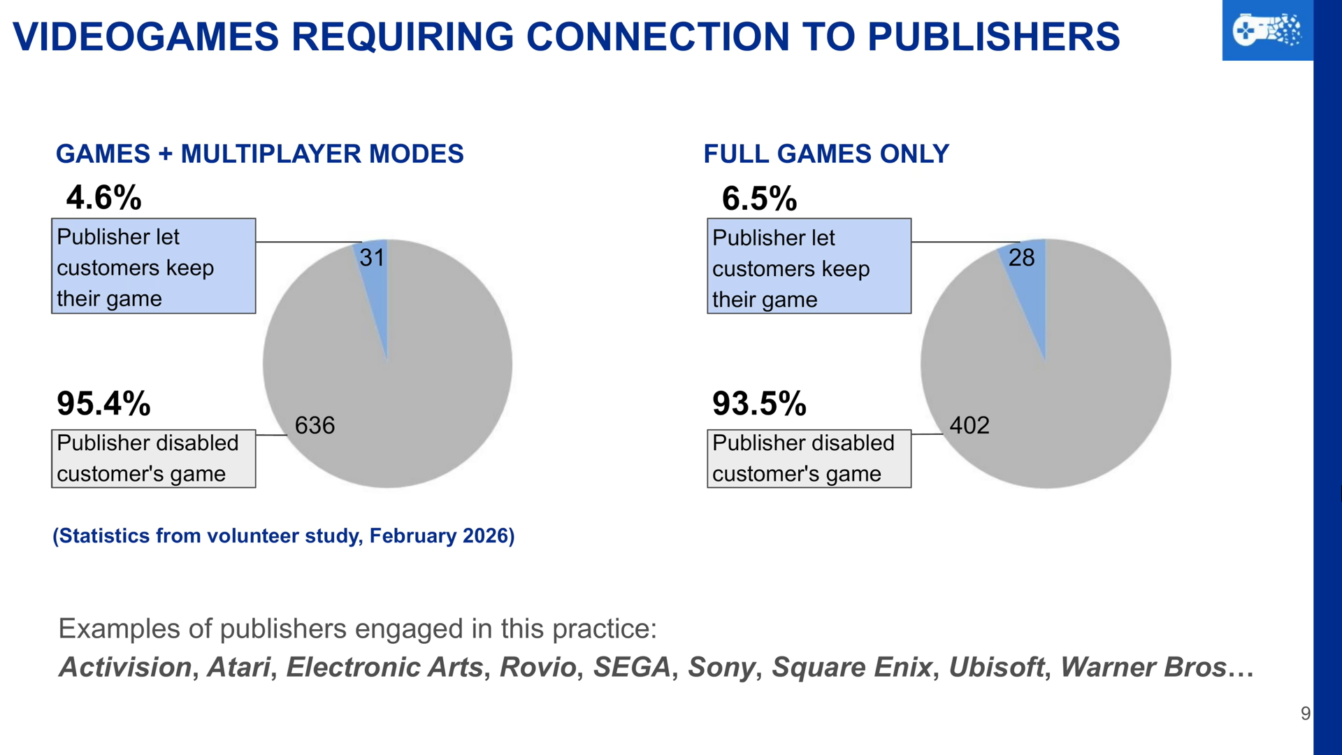 Daniel Ondruška (porte-parole) Ross Scott, Moritz-Maximilian Katzner (conseiller politique), Alberto Hidalgo Cerezo (professeur) et Marcin Barczyk (avocat) ont exposé des arguments au sujet de la protection des consommateurs, de leurs droits et de la préservation de la culture pour encourager une action de l’UE. Ross Scott met l’emphase sur la « destruction » que subit un jeu lorsqu’un éditeur vend un logiciel, conserve l’argent du client, puis finit par désactiver tous les exemplaires vendus, de sorte qu’ils ne puissent plus être utilisés. C’est un phénomène qu’il ne faut pas sous-estimer puisqu’il concerne 93,5% des jeux qui dépendent de serveurs exploités par un éditeur, qui nécessite une authentification en ligne ou tout autre système qui demande une connexion.