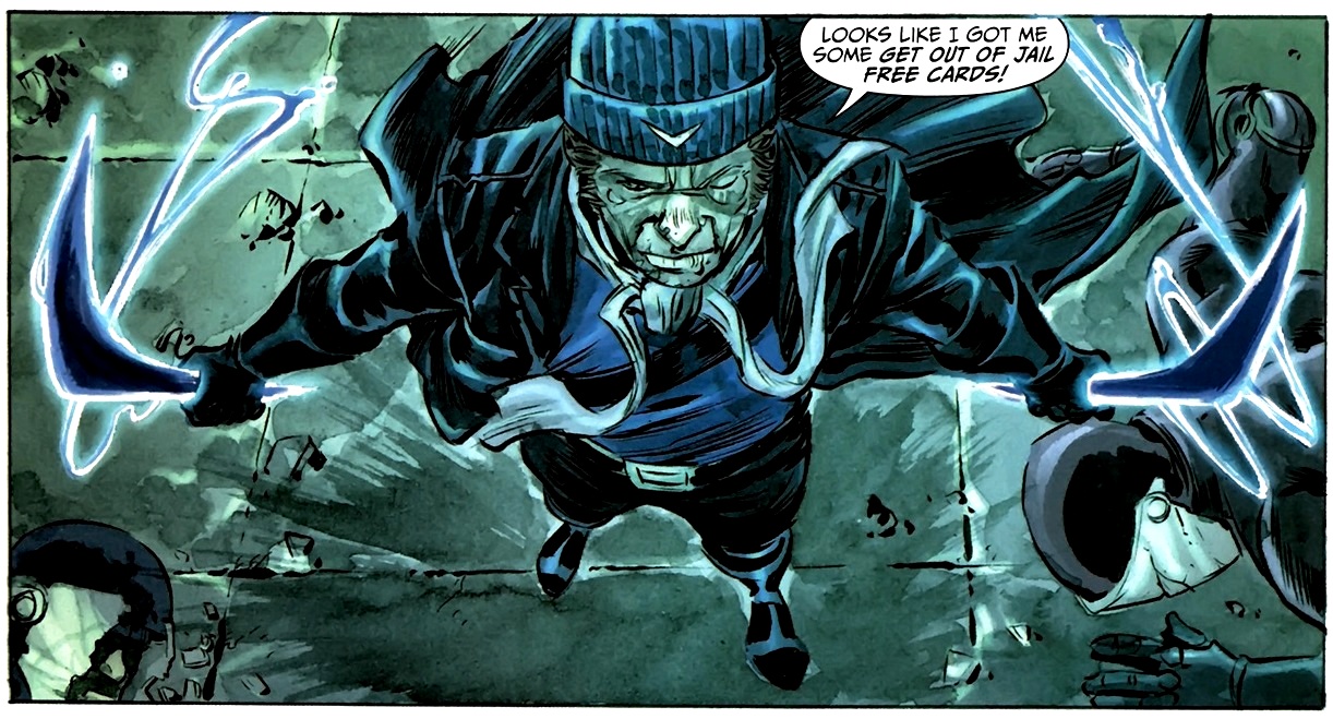 Comme souvent dans les comics, de nombreux personnages enfilent le même costume afin d’être cohérents avec la timeline de l’œuvre. Dans le cas présent, nous avons deux personnes qui ont incarné Captain Boomerang, le super-vilain venu tout droit d’Australie : George « Digger » Harkness premier du nom, et son fils Owen Mercer. Nous allons surtout nous intéresser à ce dernier, car il semblerait que ce soit à lui que nous ayons à faire dans le jeu.