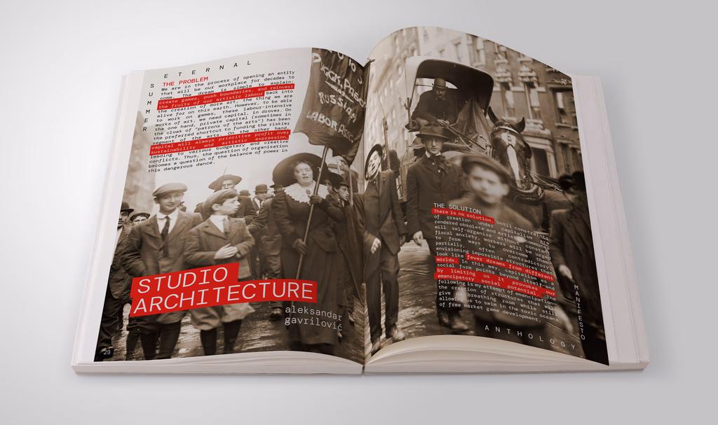 Summer Eternal, jeune collectif issu en partie des ruines de ZA/UM, en prend le contrepied. Après avoir publié un premier manifeste servant de note d’intention artistique et politique forte, leur premier projet ne se dévoilera pas par un trailer clinquant, mais par un objet tangible : un livre.
