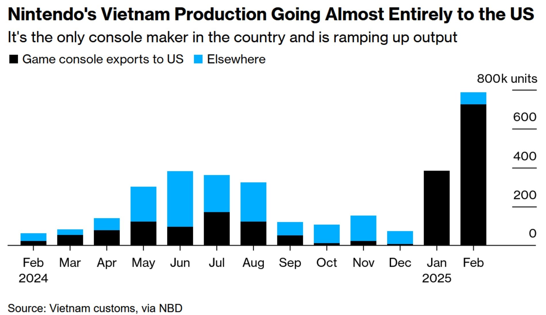 Et bien sûr, en cette année de lancement de sa Nintendo Switch 2 pour le géant nippon, une augmentation des droits de douane sur les importations venant de Chine, atteignant 145 % (!), aura un impact significatif sur sa situation financière.