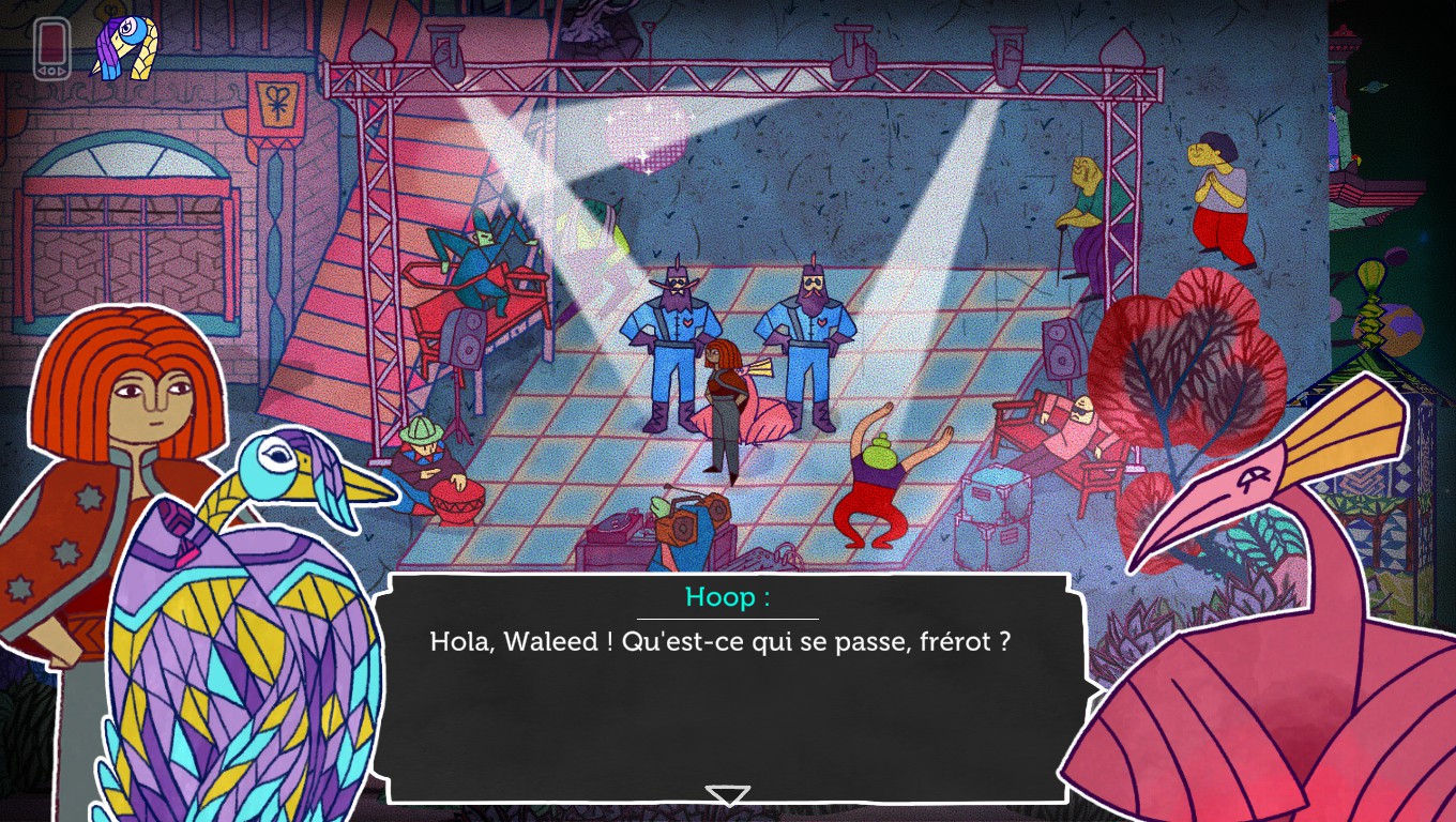 Le mélange entre l’art traditionnel et le jeu vidéo est parfaitement maîtrisé, et les décors font finalement penser à un grand livre pop-up qui fourmille de détails. L’ambiance des Mille et Une Nuits est elle aussi mise au goût du jour : les personnages s’échangent des SMS, parlent de « clopes » et de « flics », se déhanchent sur de la musique électronique, ou prennent le tramway pour se déplacer entre les lanternes, et à aucun moment on n’a l’impression que la modernité est mal dosée.