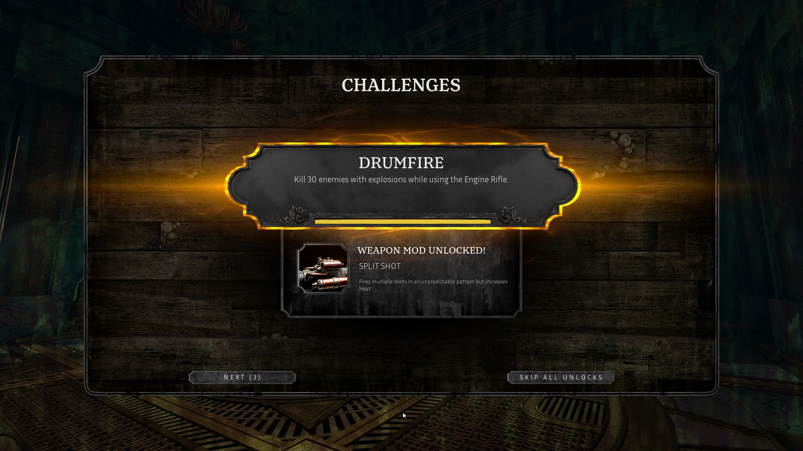 Tout ça est d’autant plus vrai quand on se décide à débloquer toute cette personnalisation, on trouve de temps en temps une monnaie qu’il nous faut acquérir en quantité pour faire avancer un arbre de talent (qui n’en est pas vraiment un puisque le but final est de tout débloquer) tandis que les modificateurs d’arme se cachent derrière des succès plus ou moins longs et difficiles à compléter.