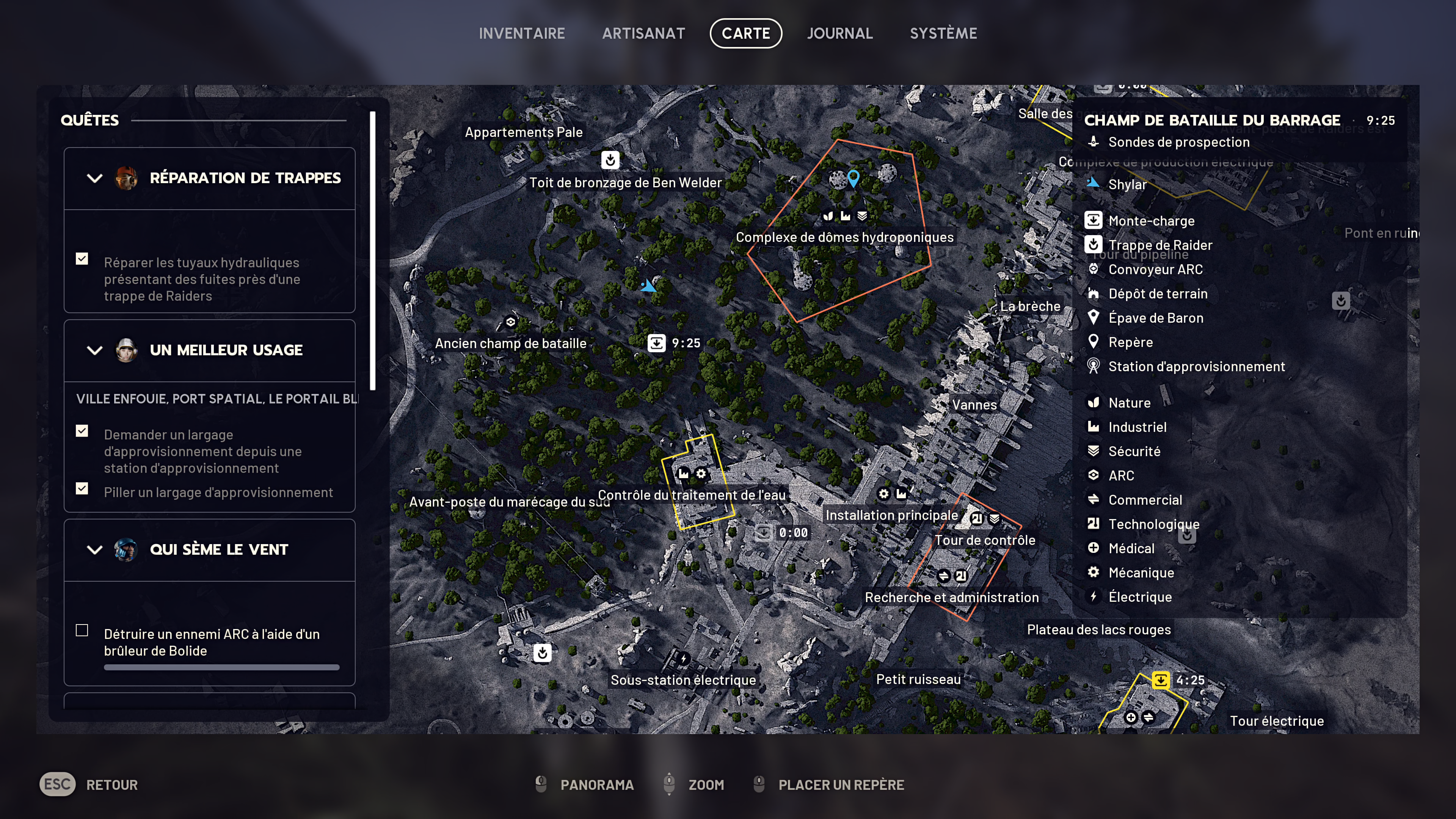Certes, on peut suivre les recettes qui nous intéressent pour les garder sous la main. Mais là encore, la manipulation frôle l’absurde : il faut ouvrir la carte, faire défiler un menu déroulant interminable, et espérer retrouver la bonne ligne après des heures de jeu. En dehors de ces petits écueils d’interface, ARC Raiders souffre aussi de quelques désynchronisations serveur : tirs non enregistrés, impacts décalés, voire dégâts reçus alors que vous étiez pourtant bien à couvert derrière un mur. Rien de catastrophique, mais suffisamment frustrant pour vous rappeler que la Ceinture de Rouille n’est pas le seul endroit où les choses grincent encore un peu.