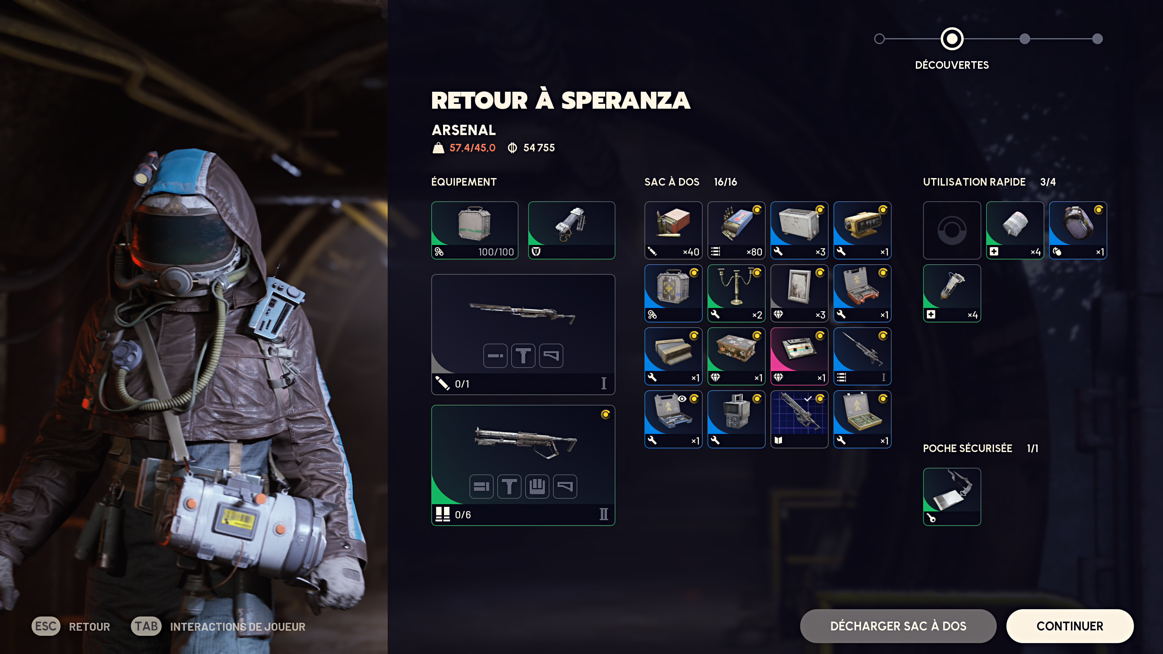 En parallèle de cela, vous aurez également l’opportunité de construire divers établis, vous permettant à leur tour de fabriquer toute sorte d’équipements, que ce soit des armes, des mines lasers ou non, plein de type de grenades, des gadgets de mobilité et bien plus encore. Et pour cela, il faudra ramasser tout un tas de bric-à-brac et réussir à l’extraire, puis le trier selon vos besoins et la capacité de votre réserve. Il faudra ensuite déterminer quoi vendre, quoi conserver ou recycler et ainsi de suite, ce qui nous amène au plus gros point noir de ARC Raiders: l’ergonomie de ses menus. Si Embark Studios semble avoir résolu une bonne partie des problématiques du genre, il n’a pas encore trouvé la formule miracle pour les menus. Prenons l’exemple du hub, Speranza, qui sert de base aux Raiders. Certes, l’endroit est joliment animé, vivant, et regroupe tous les services dont un joueur pourrait avoir besoin. Mais ses menus, eux, auraient bien besoin d’une cure de qualité de vie.