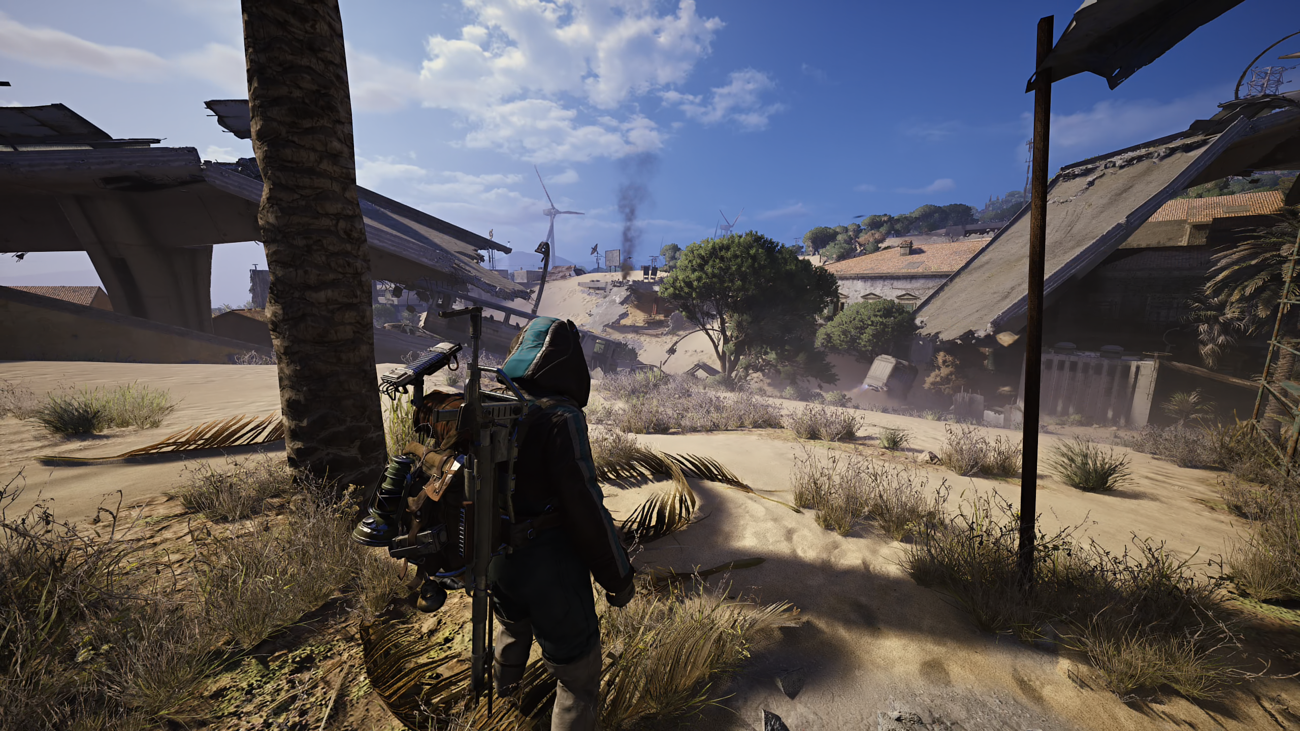 La première fois que vous foulerez le sable chaud du Champ de Bataille du Barrage, attendez-vous à un choc car la direction artistique frappe et sonne fort. Les équipes d’Embark Studios ont insufflé une âme à ce monde, une cohérence absolument organique. Avec ARC Raiders, le studio prouve qu’il maîtrise l’équilibre parfait entre technique et artistique. On l’avait senti venir, mais pas à ce point. Même après cinquante heures de jeu, le spectacle fascine toujours. Quatre cartes, c’est peu? Pas ici. Leur conception surpasse bien des productions concurrentes qui confondent richesse et confusion, qualité et profusion. Des dunes brûlantes de la Ville Enfouie aux falaises du Portail Bleu, jusqu’aux hangars oppressants du Port Spatial, chaque zone raconte une histoire. Aucun raid ne se ressemble. Et quand la nuit tombe, les règles changent.