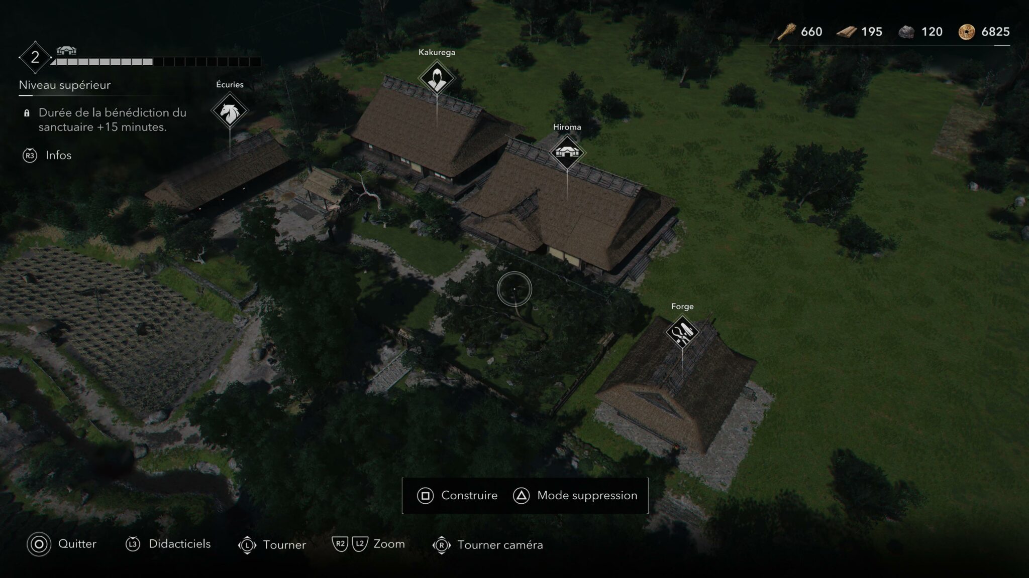 Ici, vous aurez l’occasion de construire un véritable petit village pour les opprimés et les sympathisants de la cause de Naoe et de Yasuke. Les différents ajouts que vous pourrez faire tout au long de l’aventure auront un impact sur le gameplay : plus d’éclaireurs à disposition, la possibilité de forger ou améliorer des armes, plus d’indices à disposition lors de vos enquêtes… Ce refuge est entièrement personnalisable, des bâtiments aux chemins en passant par les arbres et la décoration, tout peut être rendu plus coquet selon vos désirs.
