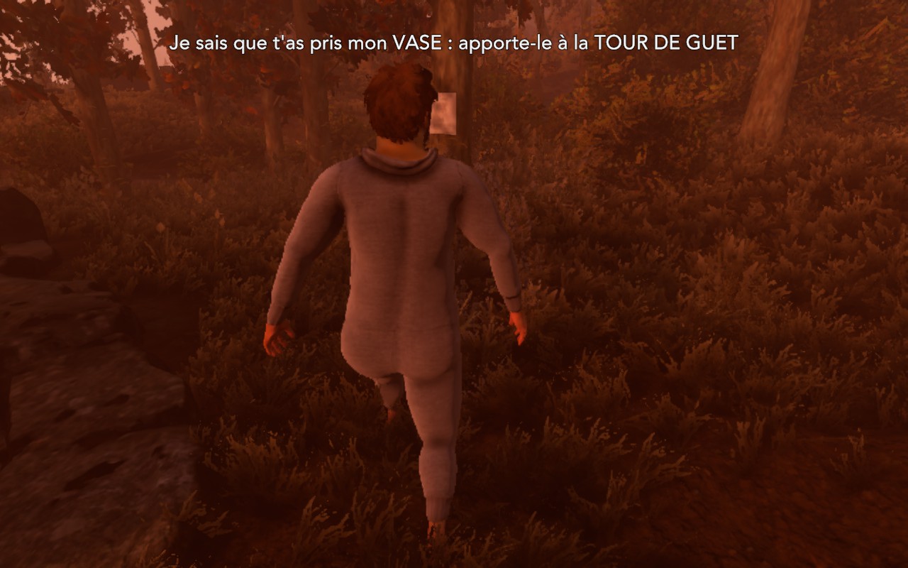 Cette tonalité absurde imprègne tout le jeu. La bande-son, brillante, intègre dynamiquement les bruits des animaux que vous croisez, vous donnant parfois le faux sentiment d’être dans un endroit paisible, et parfois l’impression que la faune elle-même se moque de vos échecs. L’humour souvent en dessous de la ceinture met en scène des personnages mi humain, mi-ânes dévêtus au niveau des jambes et une quête principale lunaire : Nate ne veut pas rentrer chez lui pour retrouver sa famille, mais pour pouvoir enfin uriner dans de vrais toilettes. Si l’humour ne fait pas toujours mouche, cette ambiance décalée sied parfaitement au calvaire de notre héros.