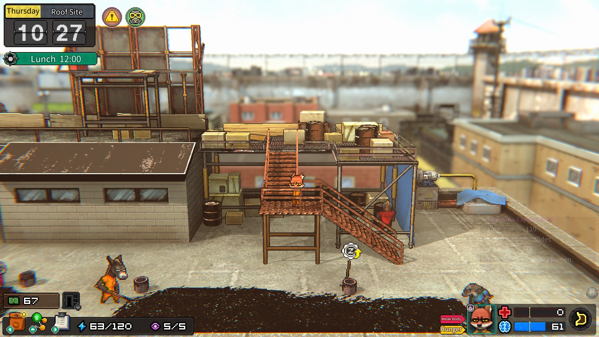 Comme dans tous jeux de survie, une place prépondérante est laissé au crafting (la fameuse brosse à dent limée pour en faire un surin…), mais surtout on a des indicateurs à suivre de près : les plus importants seront la santé et le moral. L’argent, aussi, compte énormément, étant donné que pour tout, ou presque, il faudra payer.
